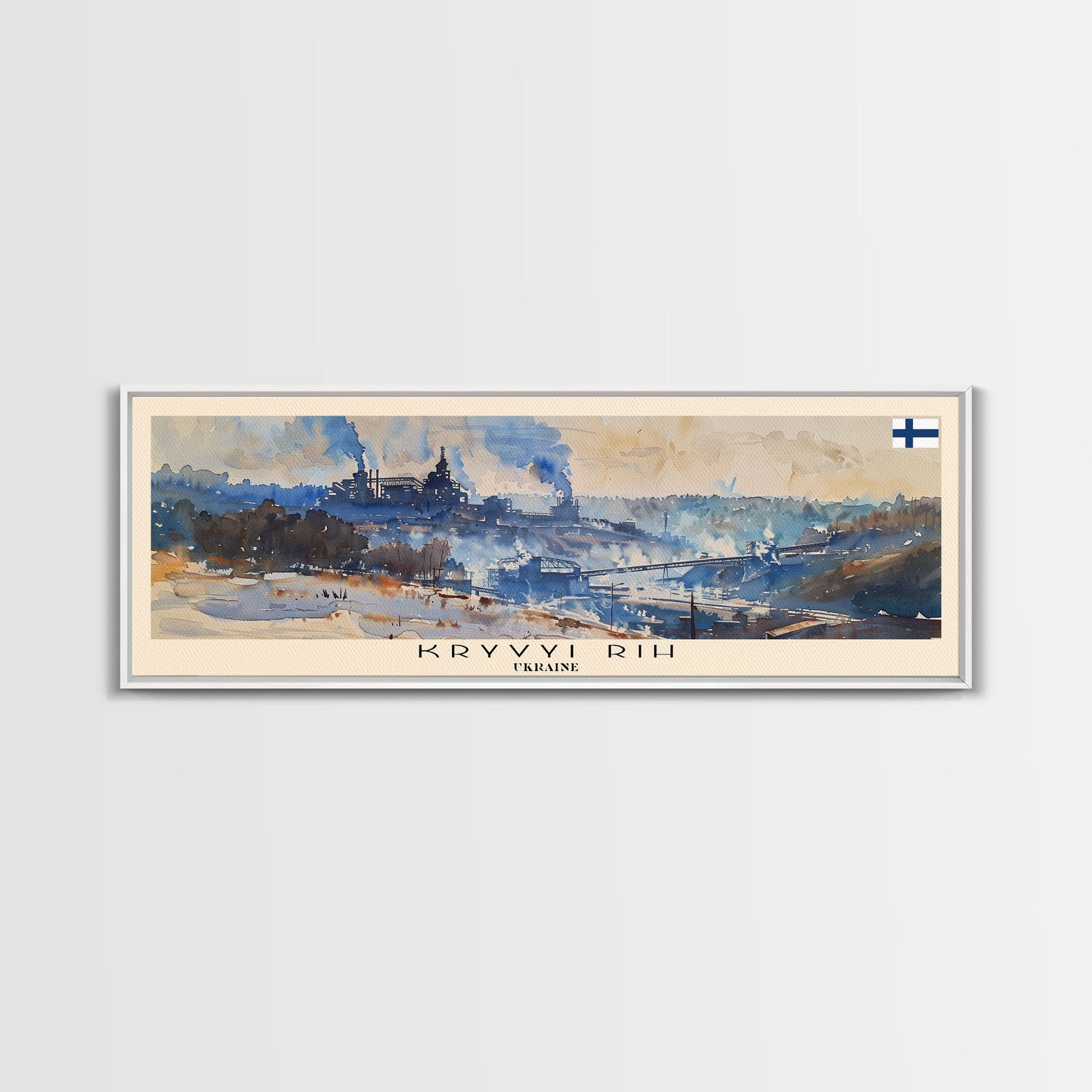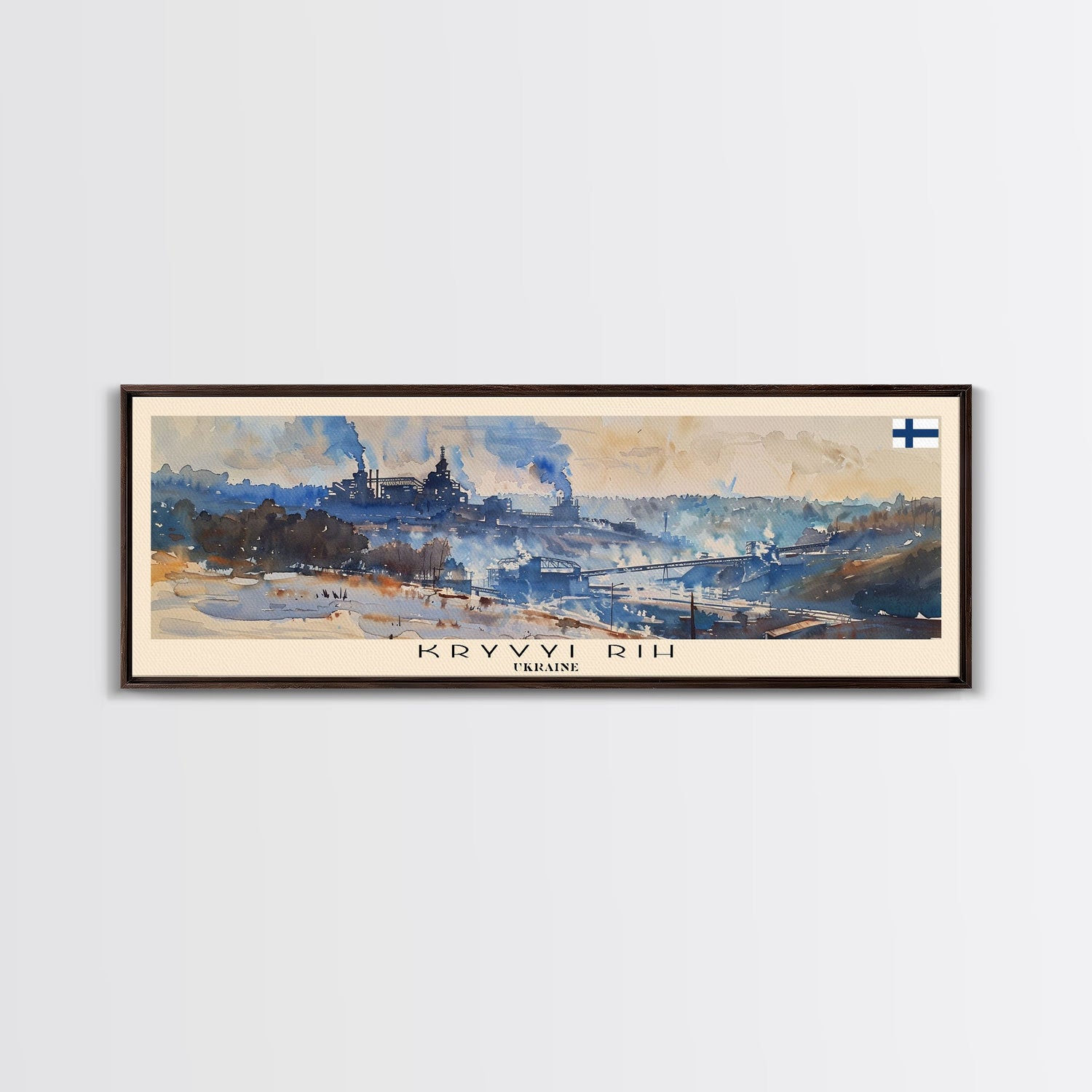 KryvyiRih Ukraine Panoramic Travel Poster, Framed Canvas Print or Metal Wall Art, Travel Art, Home Decor, Panoramic Painting, Midcentury Art - 10x30 Inches / Gallery Wrap Canvas - Ready To Hang is backordered and will ship as soon as it is back in stock.