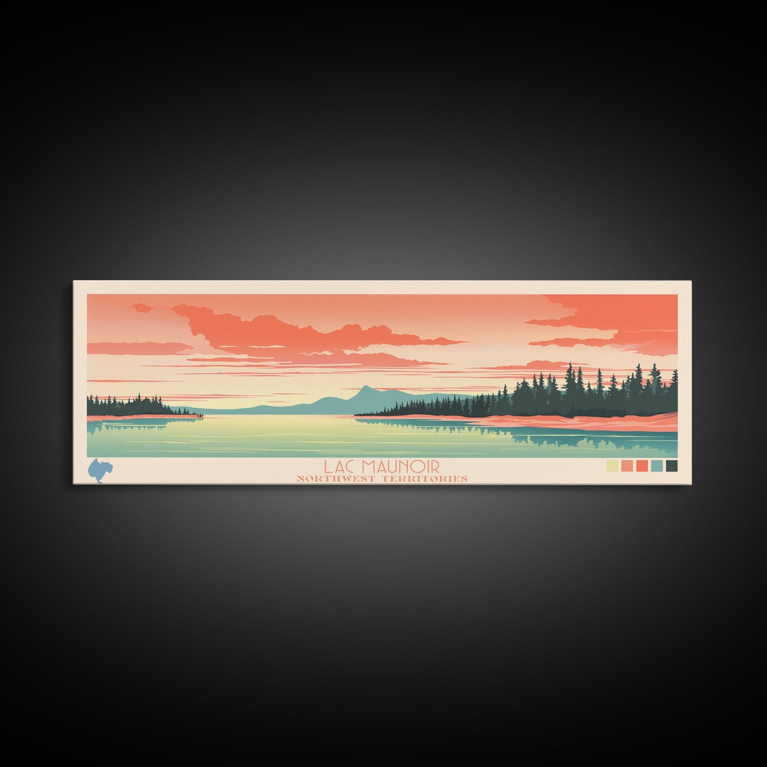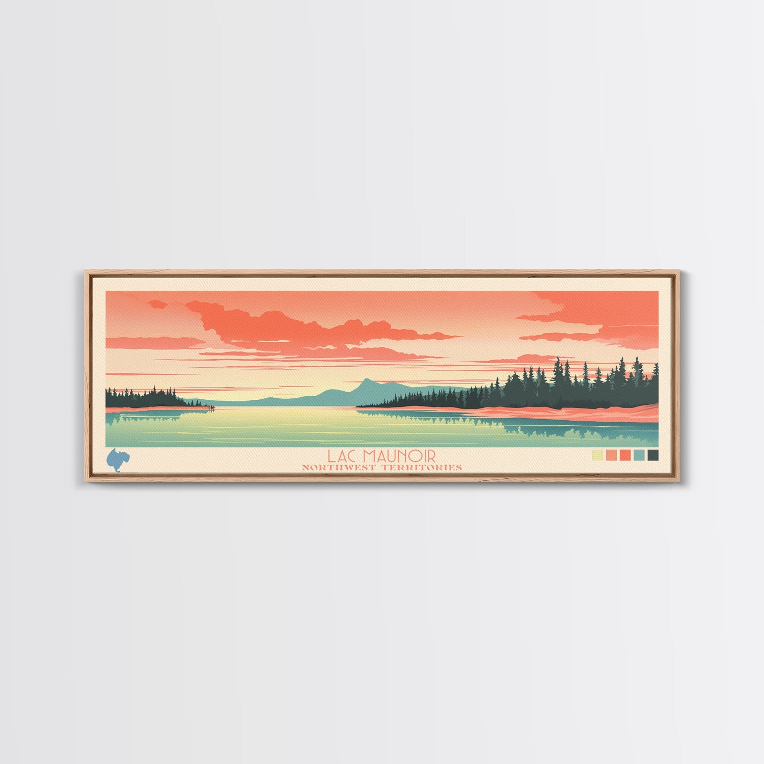 Lac Maunoir Northwest Territories Framed Canvas Print, Panoramic Art, Midcentury Modern, Pop Art, Living Room Wall Art, Travel Poster, Lake House Decor