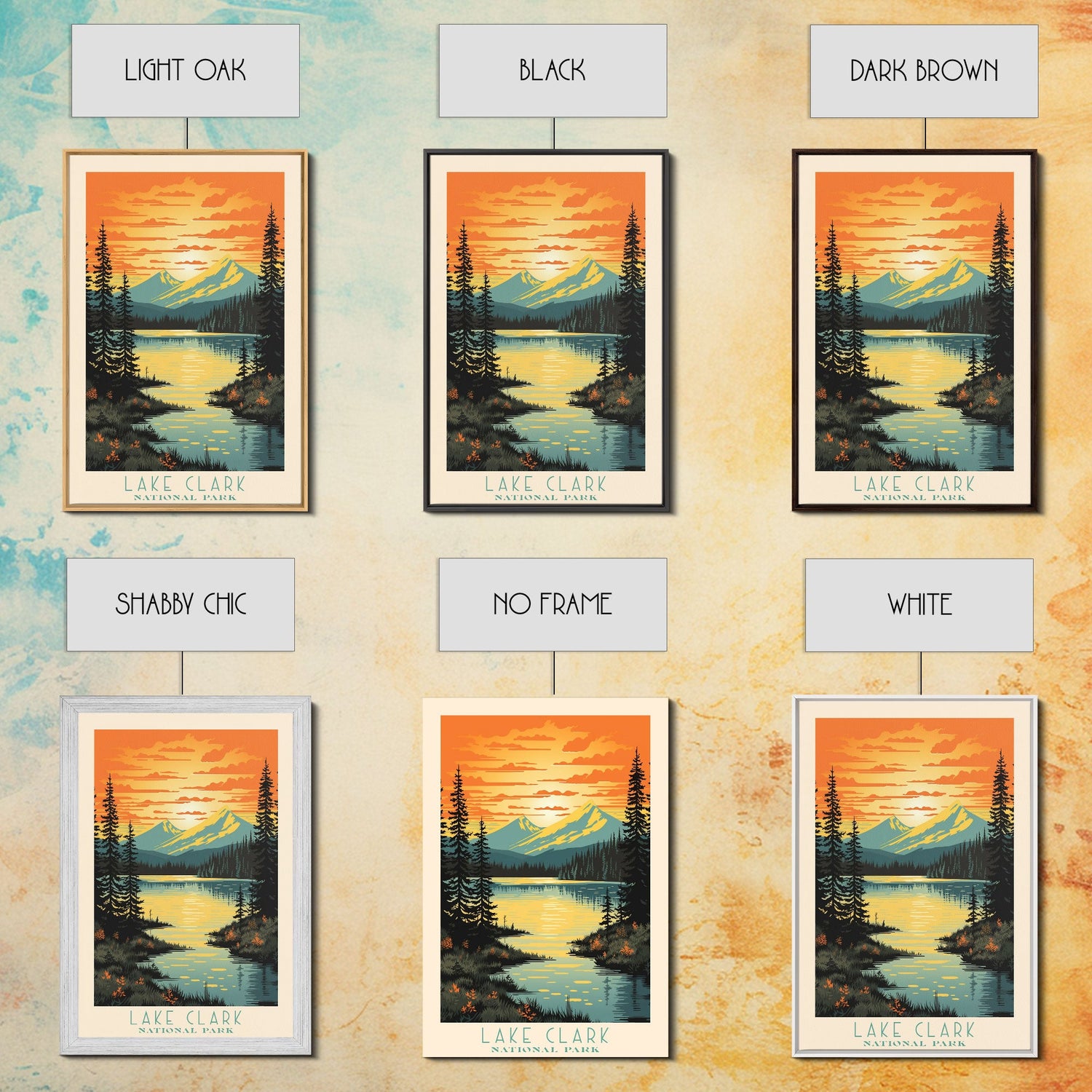 Lake Clark National Park, Alaska Travel Art, National Park Print, Minimalist Travel Art, Midcentury Modern Retro Style Landscape - 8x12 Inches / No Frame - Stretched Canvas Only is backordered and will ship as soon as it is back in stock.