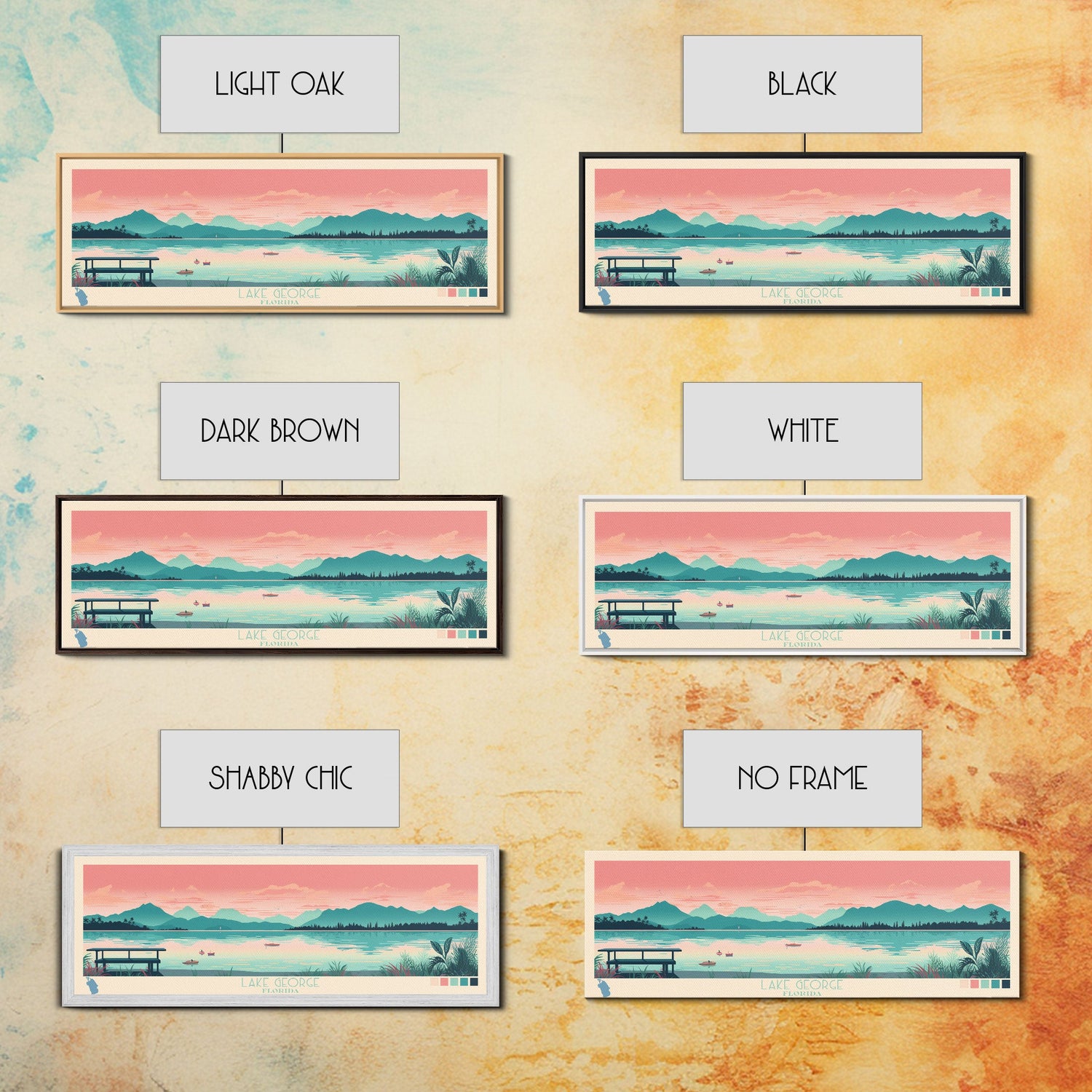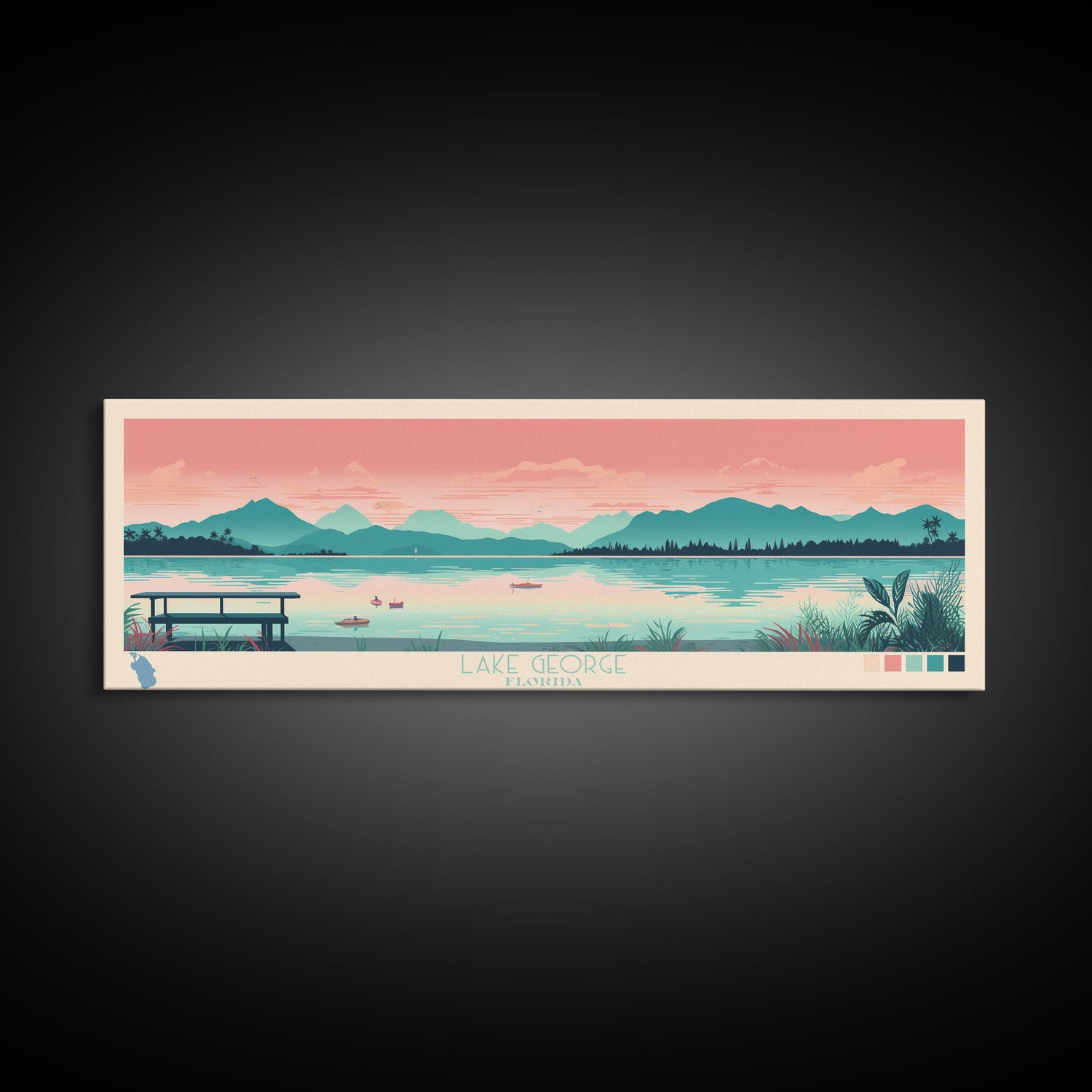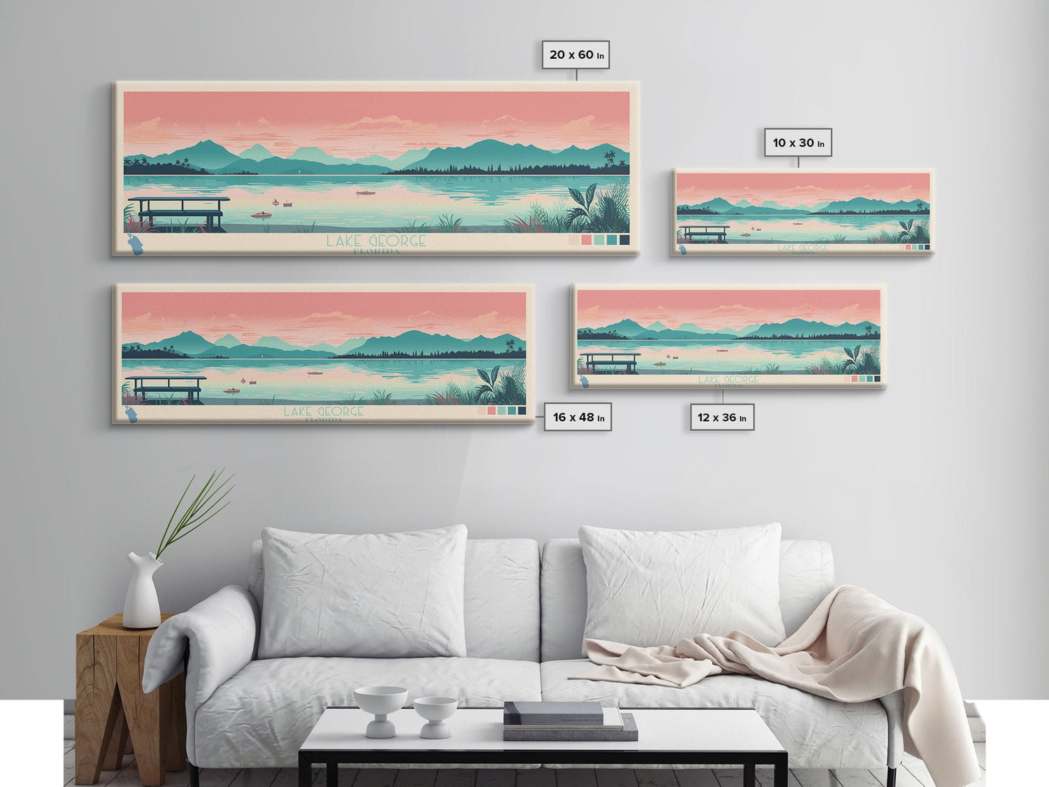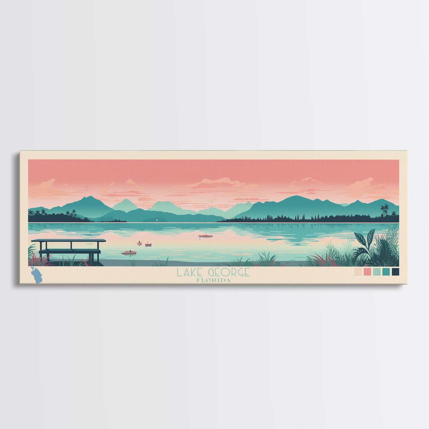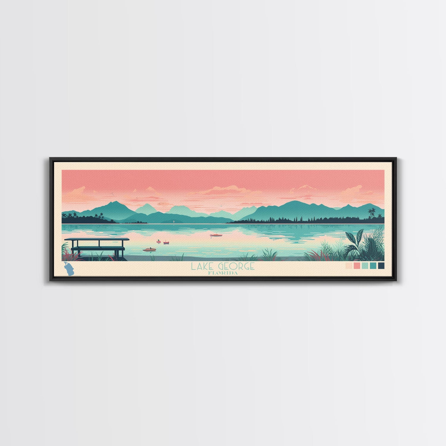 Lake George Florida Framed Canvas Print, Panoramic Wall Art, Midcentury Modern, Pop Art, Bedroom Decor, Travel Poster, Living Room Art - 10x30 Inches / Gallery Wrap Canvas - Ready To Hang is backordered and will ship as soon as it is back in stock.