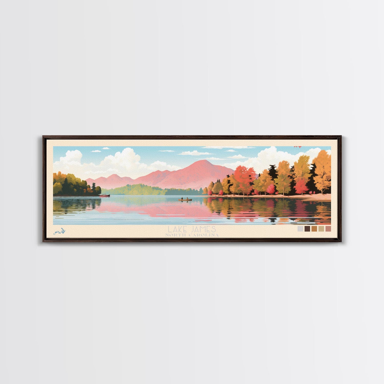 Lake James North Carolina Framed Canvas Print, Panoramic Wall Art, Midcentury Modern, Pop Art, Living Room Decor, Travel Poster, Bedroom Art