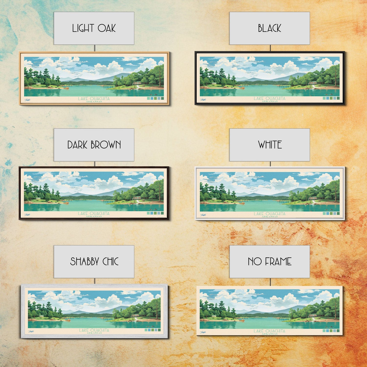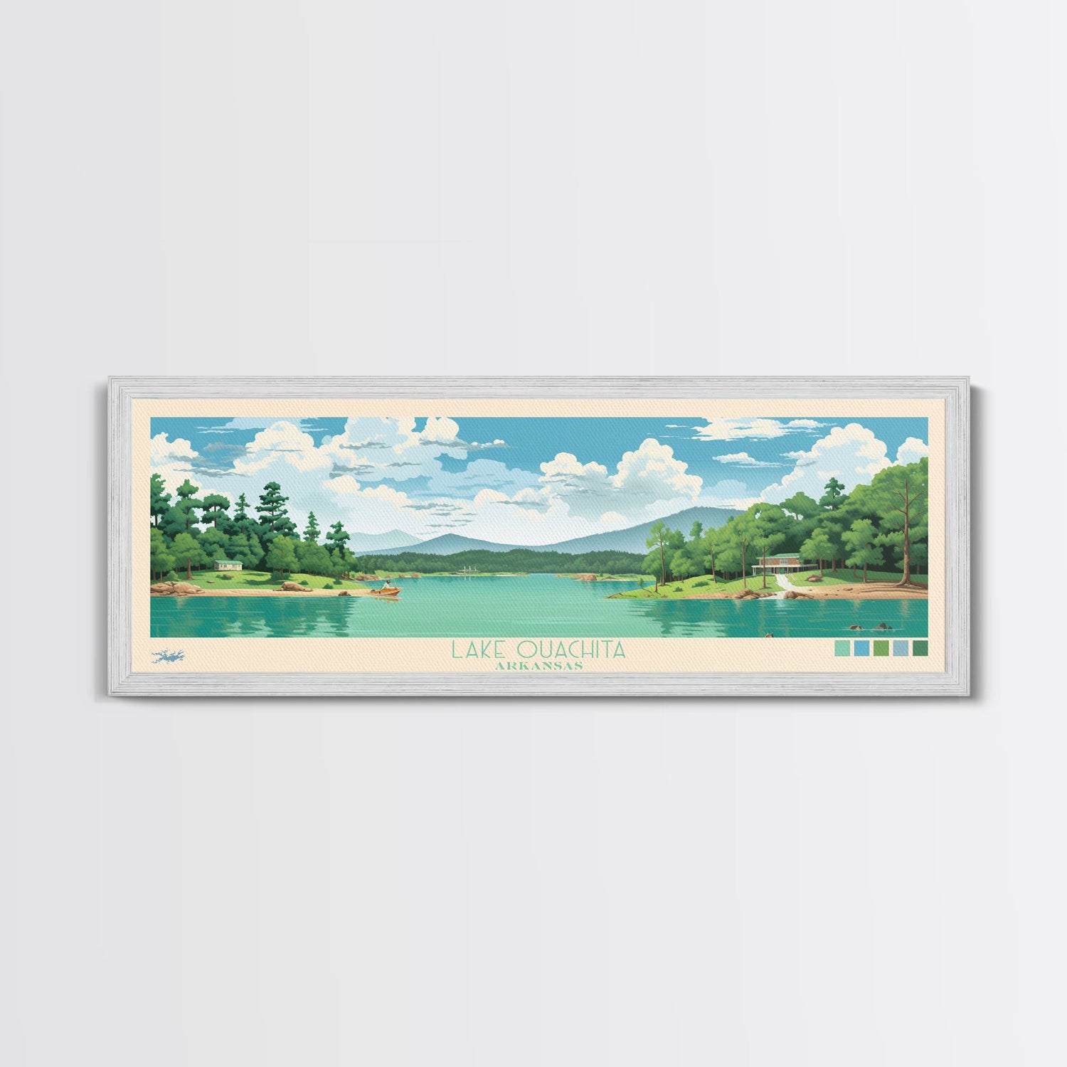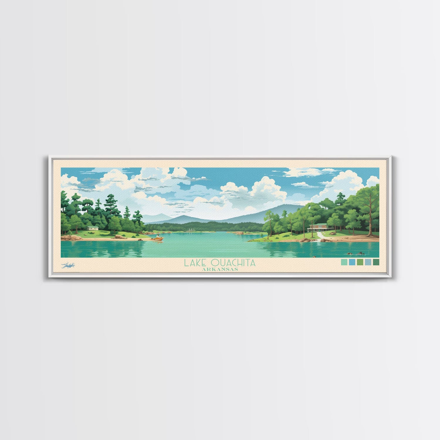 Lake Ouachita Arkansas Framed Canvas Print, Panoramic Wall Art, Midcentury Modern, Pop Art, Living Room Decor, Travel Poster, Lake House Art