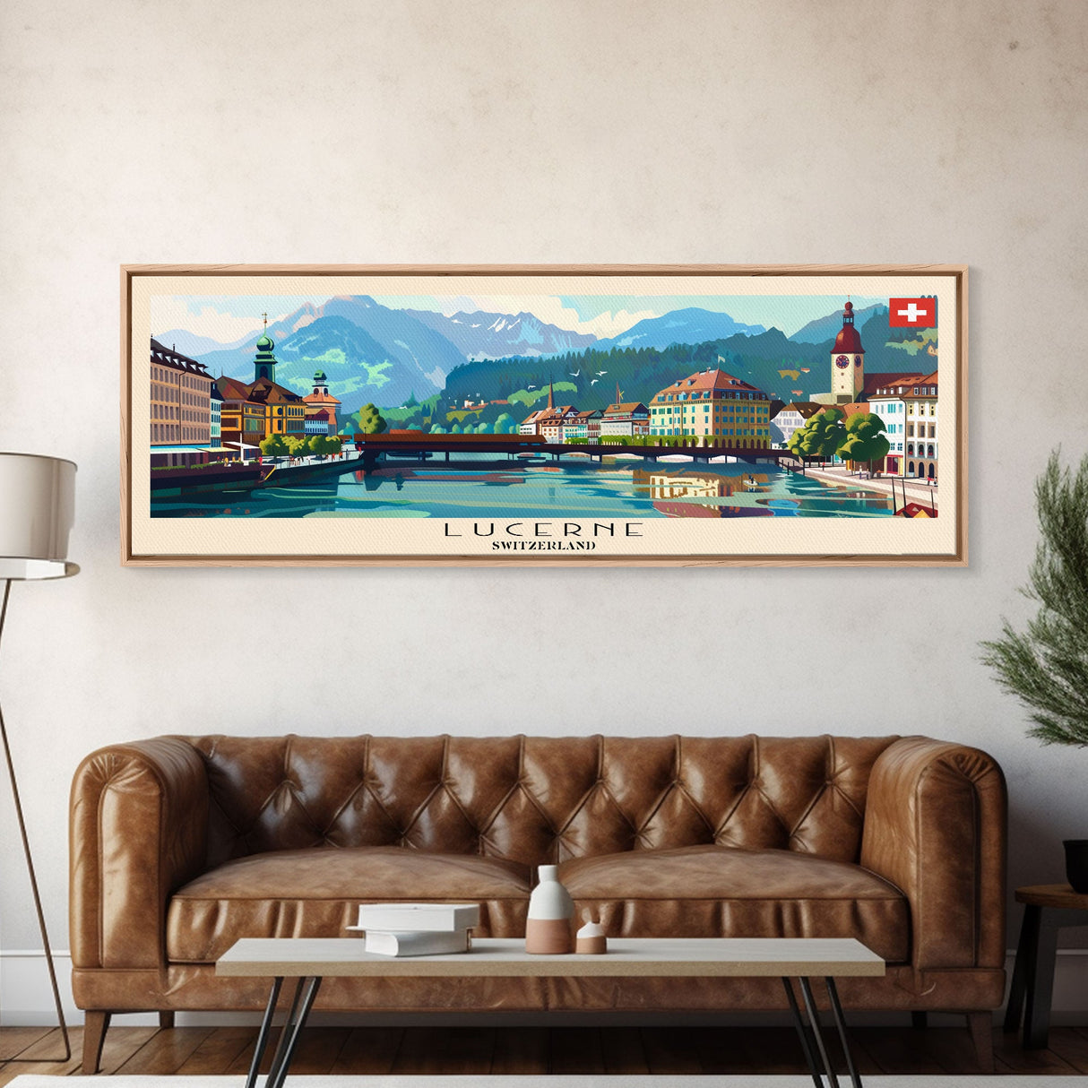 Lucerne Switzerland Travel Art, City Art, Framed Canvas Print or Metal Wall Art, Europe Travel Poster, Panoramic Wall Art, Extra Wide Wall Art
