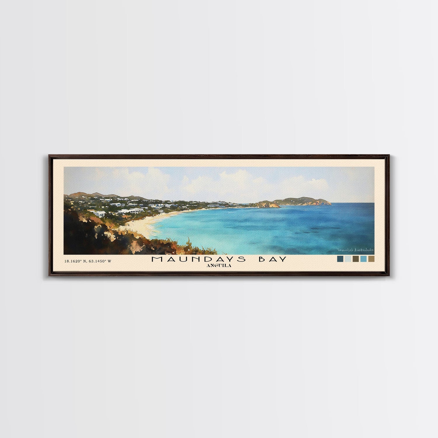 Maundays Bay, Anguila Watercolor Beach Print, Vacation Gift, Anguila Wall Art, Framed Canvas Print, Framed Beach Painting - 10x30 Inches / No Frame - Stretched Canvas Only is backordered and will ship as soon as it is back in stock.