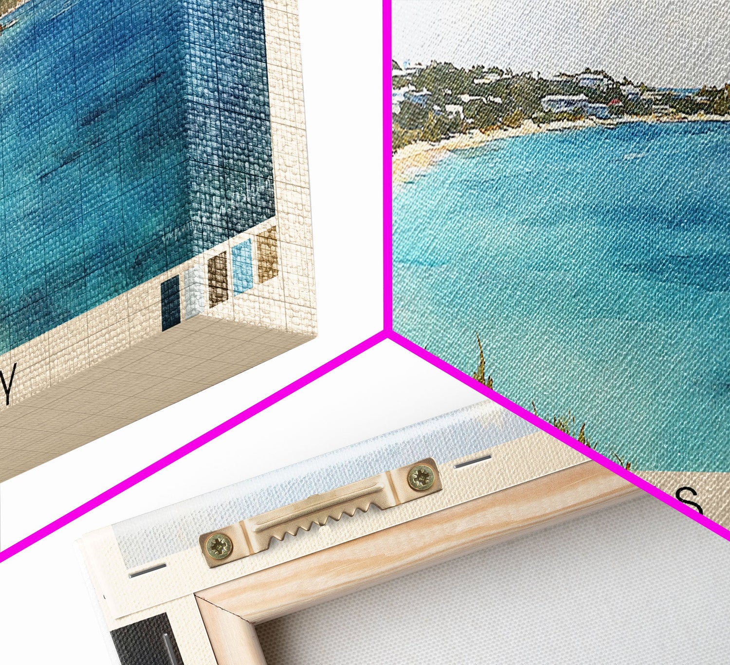 Maundays Bay, Anguila Watercolor Beach Print, Vacation Gift, Anguila Wall Art, Framed Canvas Print, Framed Beach Painting