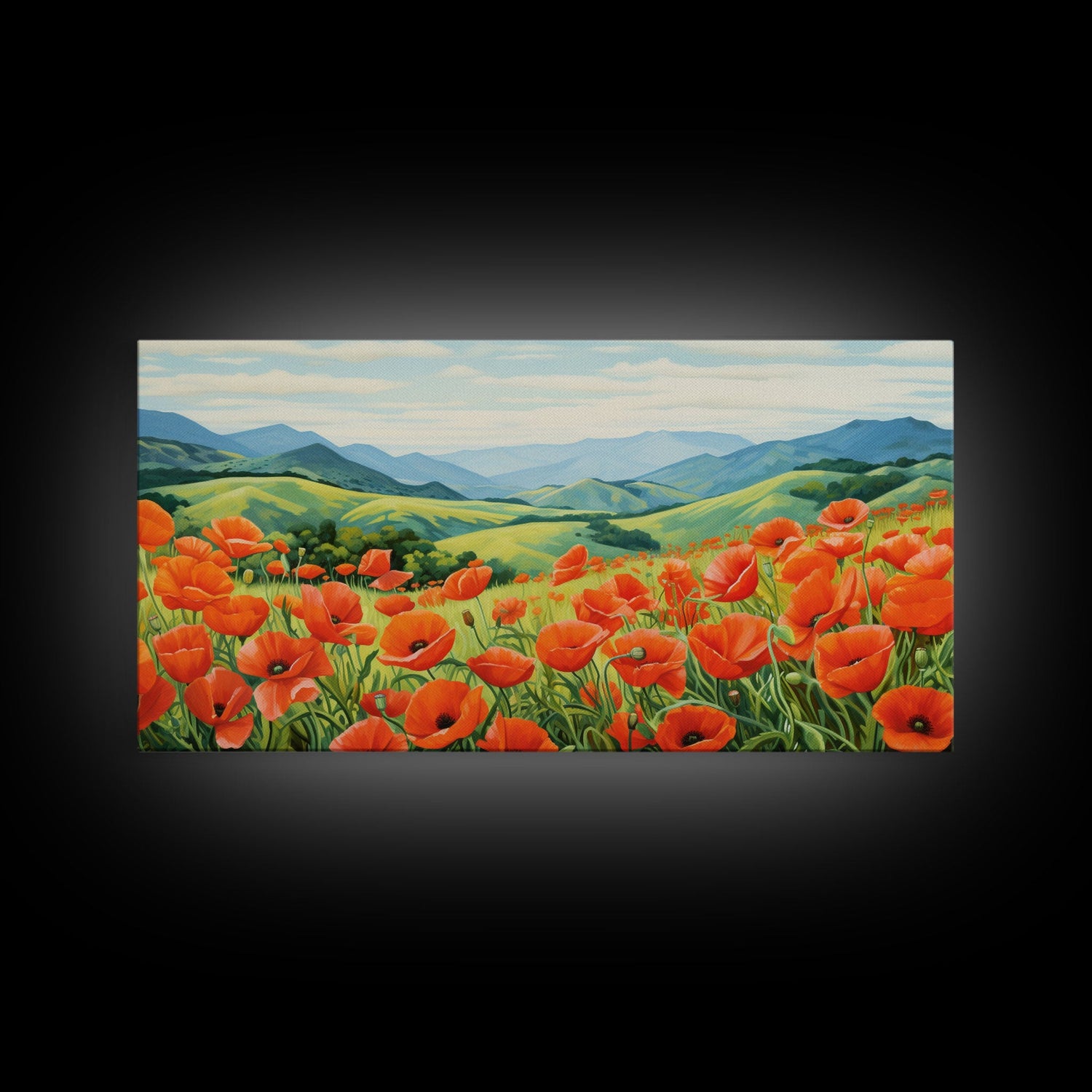 Meadow Wall Art, Poppies Wall Print, Red Flowers, Panoramic Art, Wall Art, Canvas Art, Landscape Art, Going Away Gift, New Home Gift