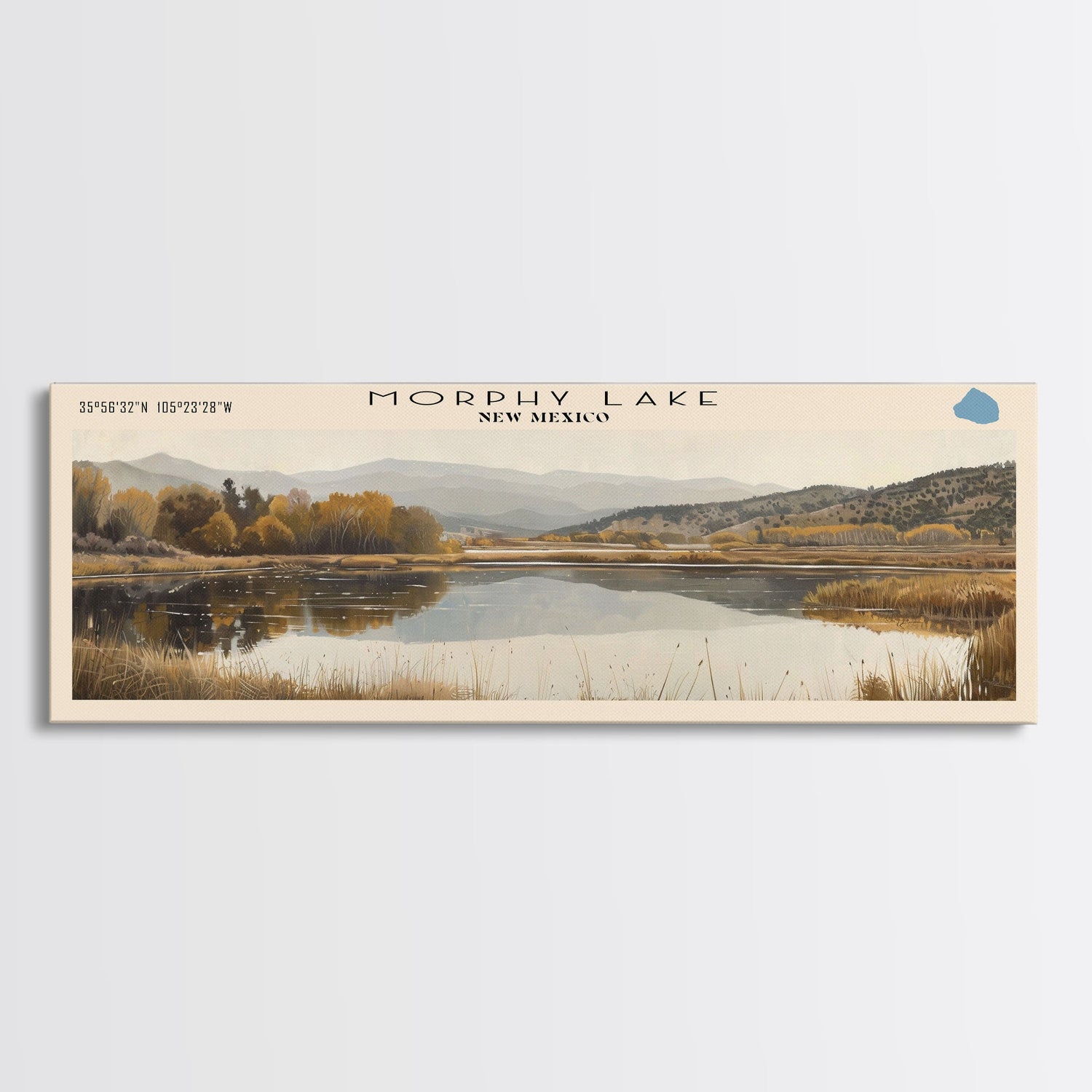 Morphy Lake New Mexico Framed Canvas Print, Lake House Decor, Panoramic Wall Art, Travel Poster, Scenic Landscape Painting, Contemporary Art