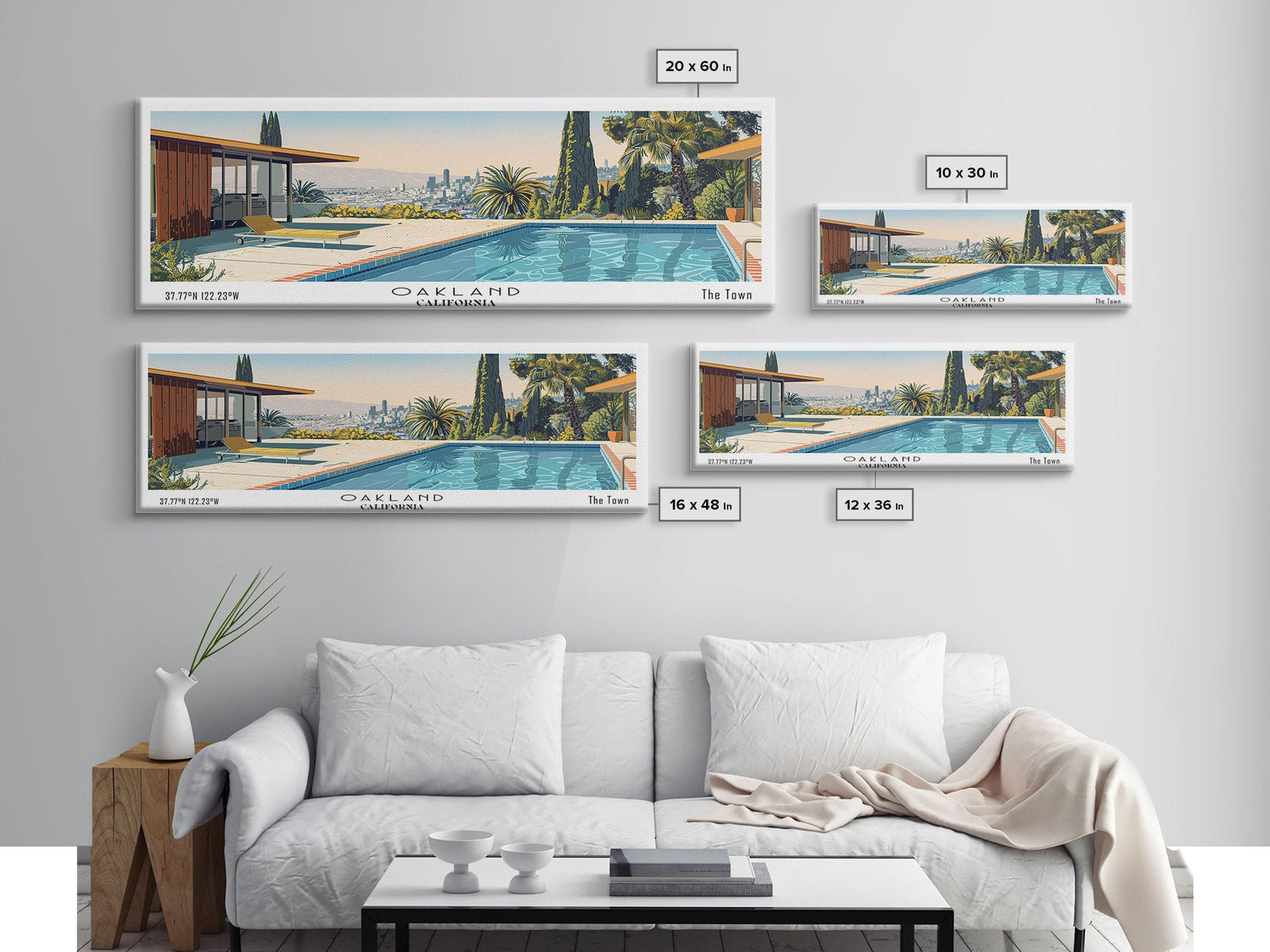 Oakland California Panoramic Painting, Mid Century Modern Framed Canvas Print, Retro Pop Art Travel Poster, City Art, Office Wall Decor, Living Room Art - 10x30 Inches / No Frame - Stretched Canvas Only is backordered and will ship as soon as it is back in stock.