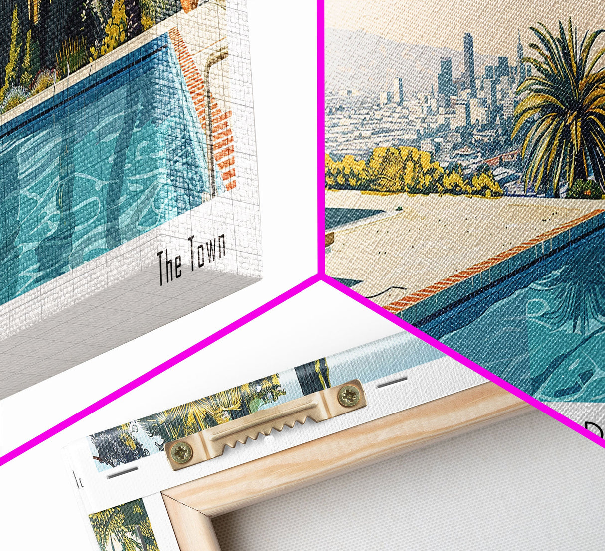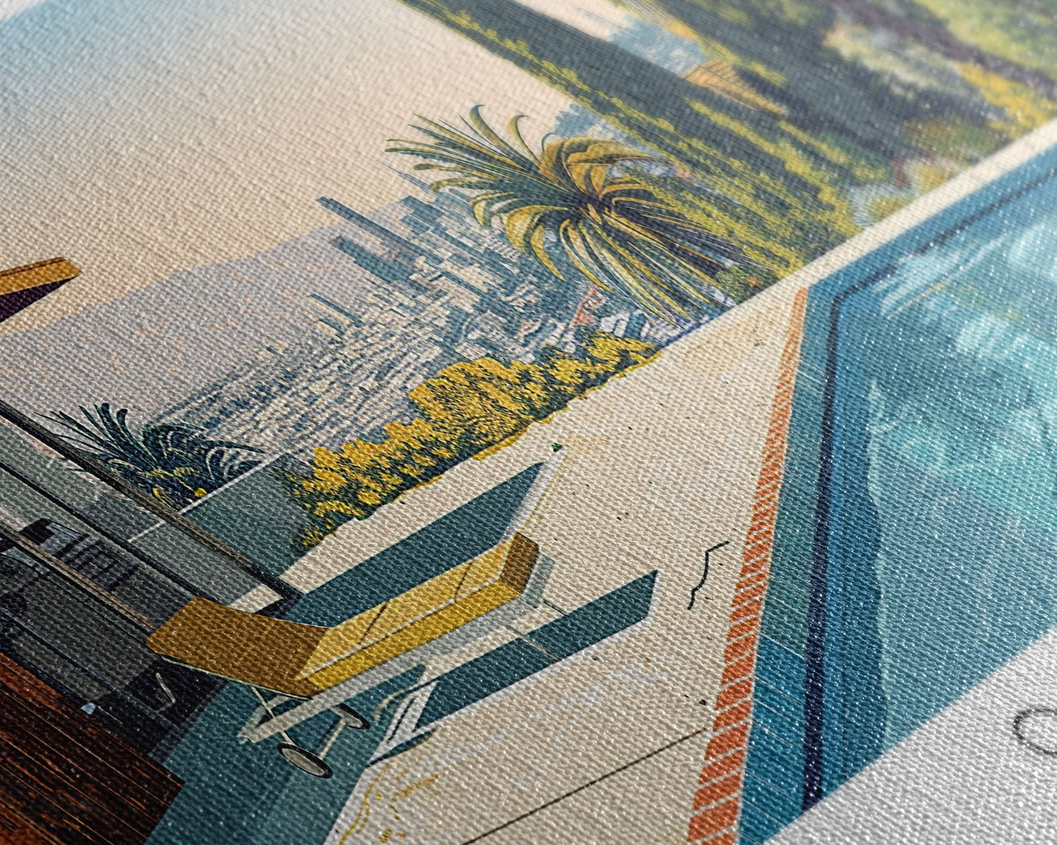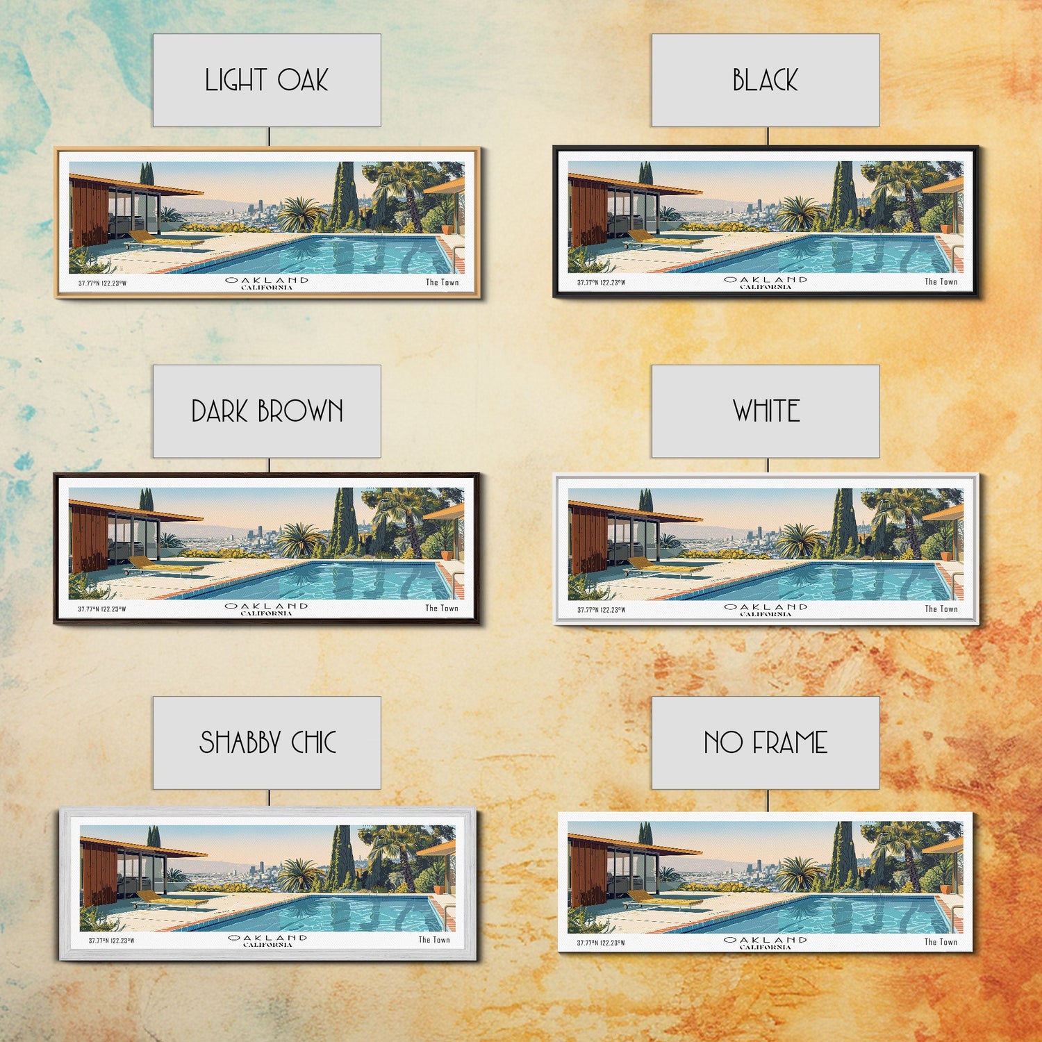 Oakland California Panoramic Painting, Mid Century Modern Framed Canvas Print, Retro Pop Art Travel Poster, City Art, Office Wall Decor, Living Room Art
