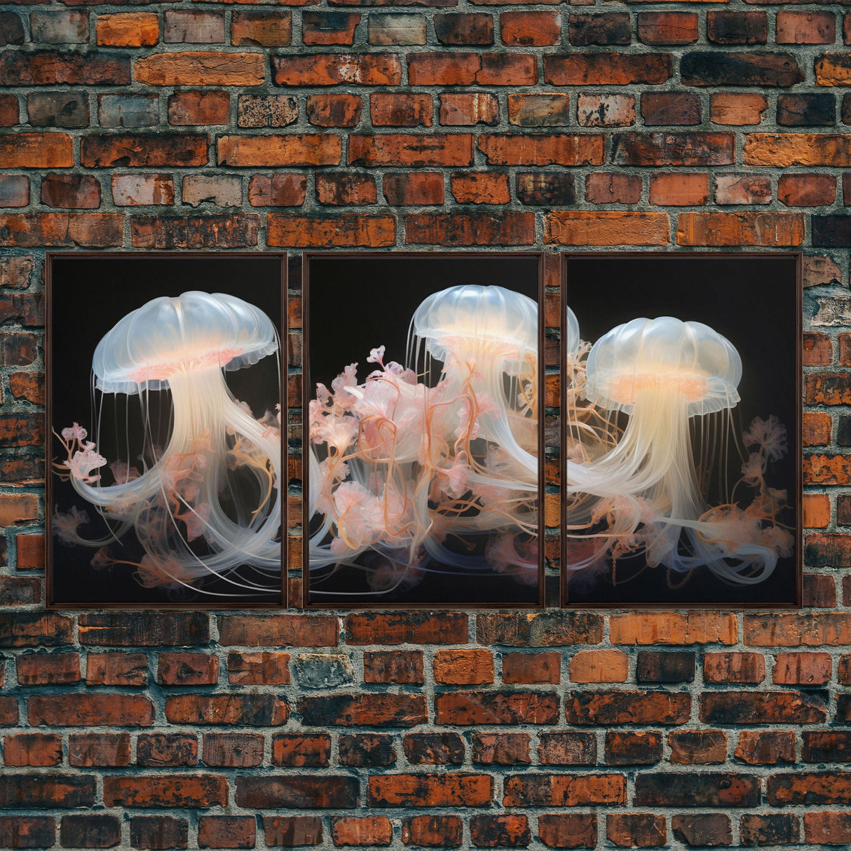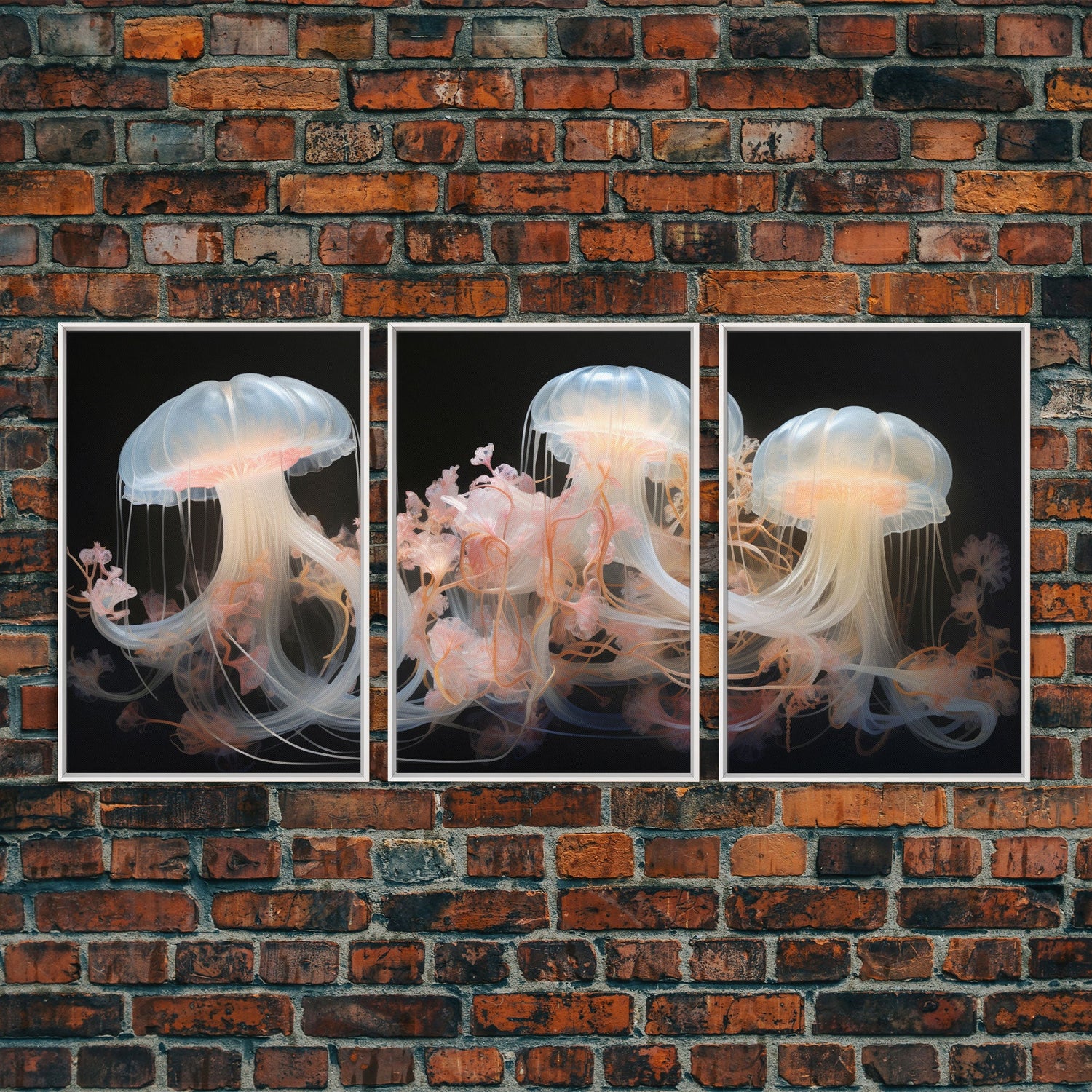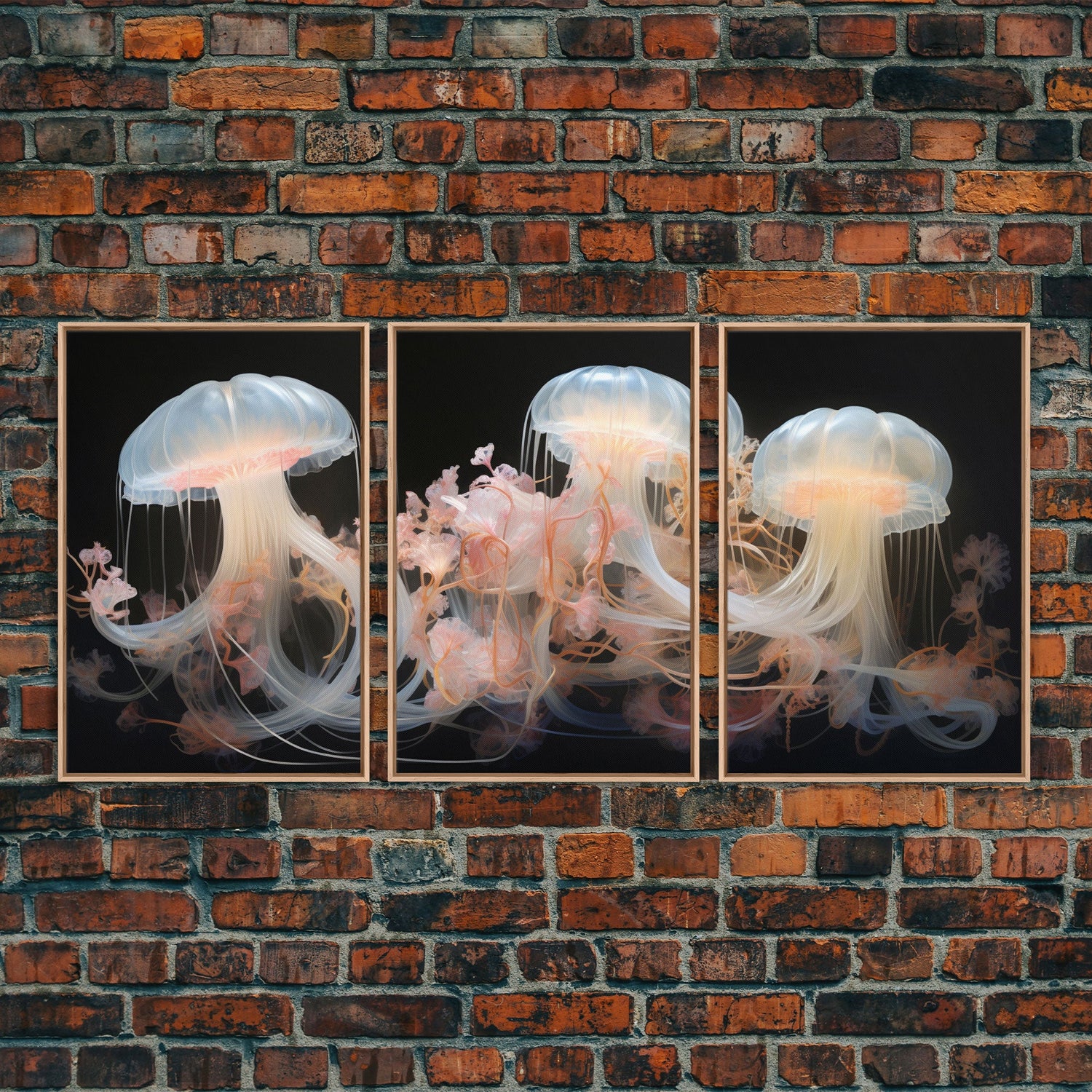 Ocean Wall Art, Animal Art, Jelly Fish Wall Art, Canvas Print, Wall Art, 3 Piece Wall Art, Unique Wall Decor, Kitchen Wall Art, Travel Print