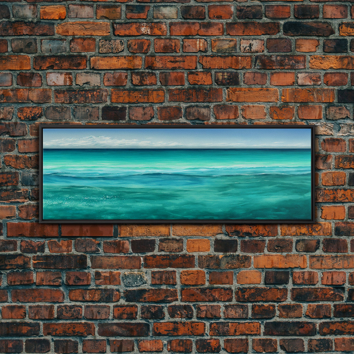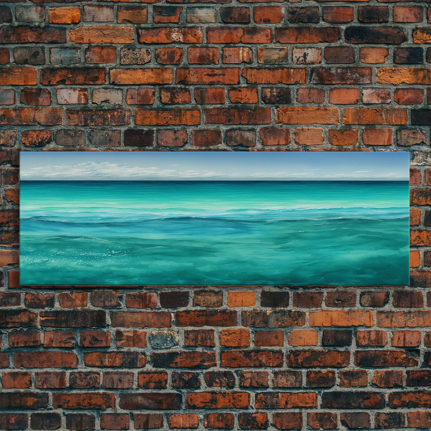 Panoramic Canvas Print of Blue Ocean Landscape Painting - Home and Office Decor, Sea Green, Seascapes, Pacific Ocean, Atlantic Ocean - 10x30 Inches / No Frame - Stretched Canvas Only is backordered and will ship as soon as it is back in stock.