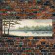Panoramic Framed Canvas Print of Misty Fog Covered Lake and Pine Tree Forest, Perfect for Living Room, Bedroom