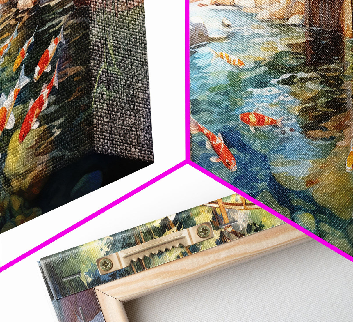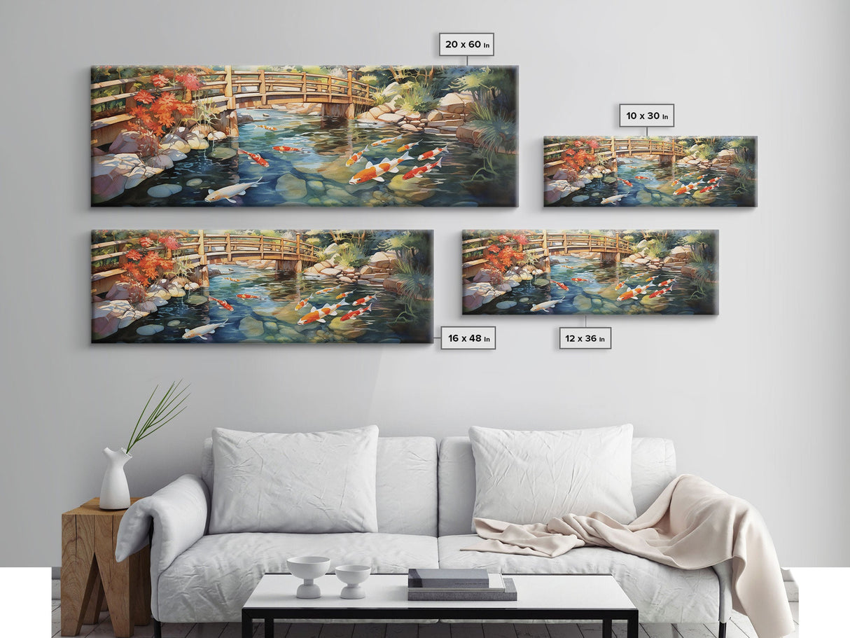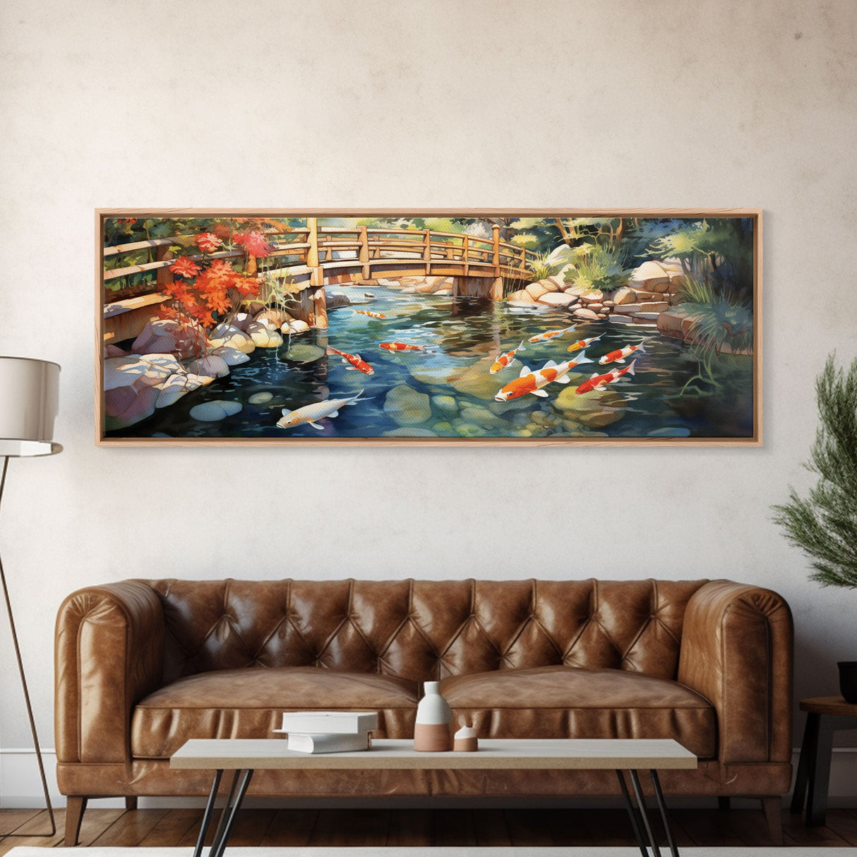 Panoramic Koi Pond Painting Canvas Print, Framed Wall Art, Unique Home Decor, Gift Idea, Art With Frame, Living Room Art