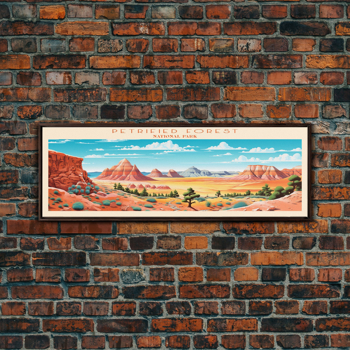 Petrified Forest National Park Panoramic Arizona Travel Art, National Park Print, Minimalist Travel Art, Midcentury Modern Style Landscape - 10x30 Inches / No Frame - Stretched Canvas Only is backordered and will ship as soon as it is back in stock.