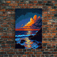 Pixel Art Sunset obscured by clouds, framed canvas print, 8 bit art