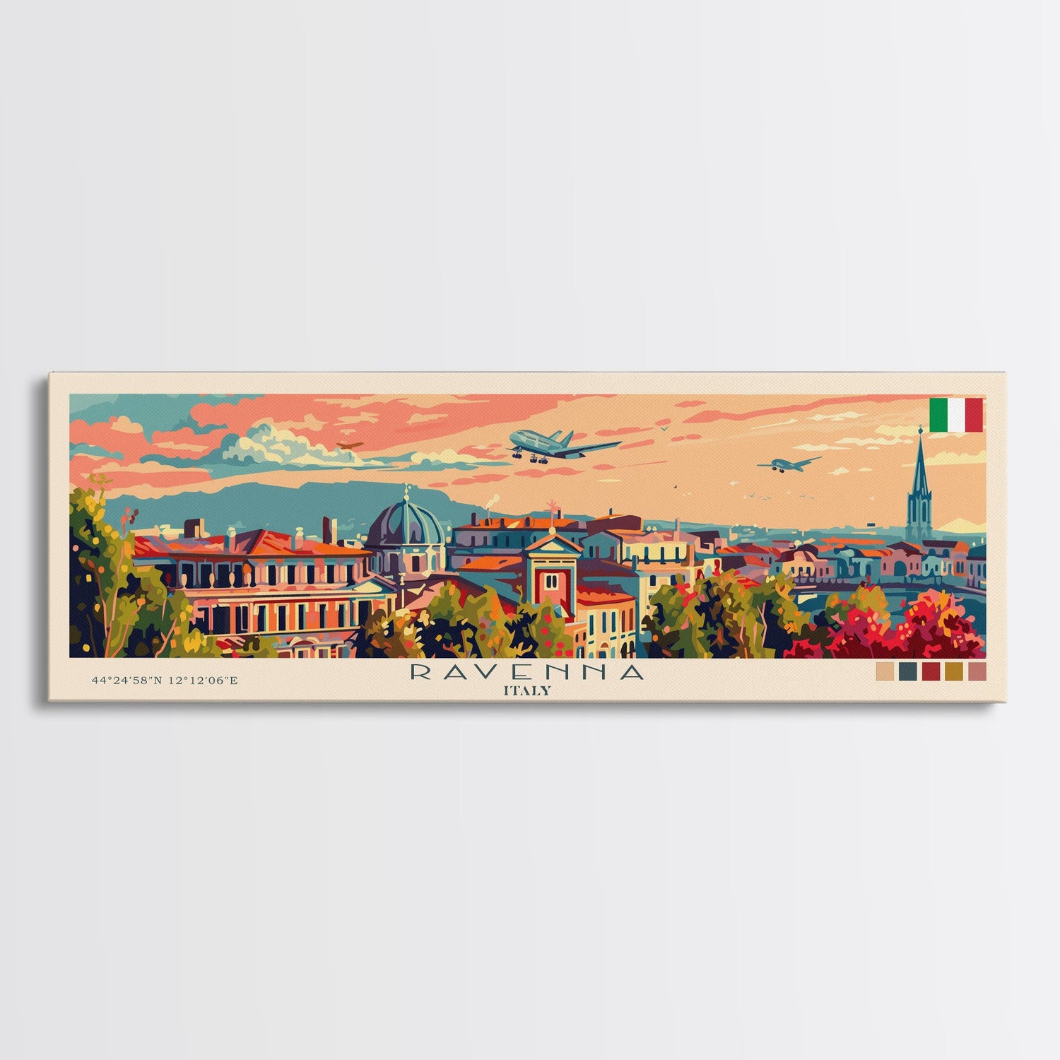 Ravenna Italy Panoramic Travel Poster, Framed Canvas Print or Metal Wall Art, Travel Art, Home Decor, Panoramic Painting, Midcentury Art