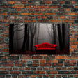 Red Sofa In A Forest Framed Canvas Print, Thought Provoking Art, Framed Art, Creepy Photography, Halloween Art - 10x20 Inches / No Frame - Stretched Canvas Only is backordered and will ship as soon as it is back in stock.