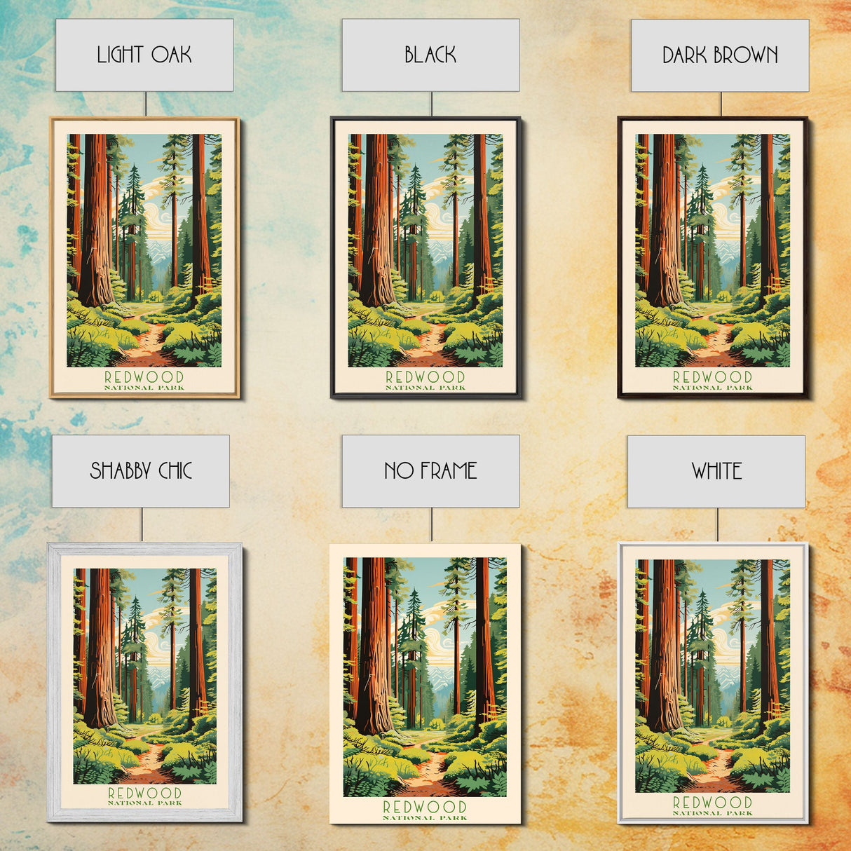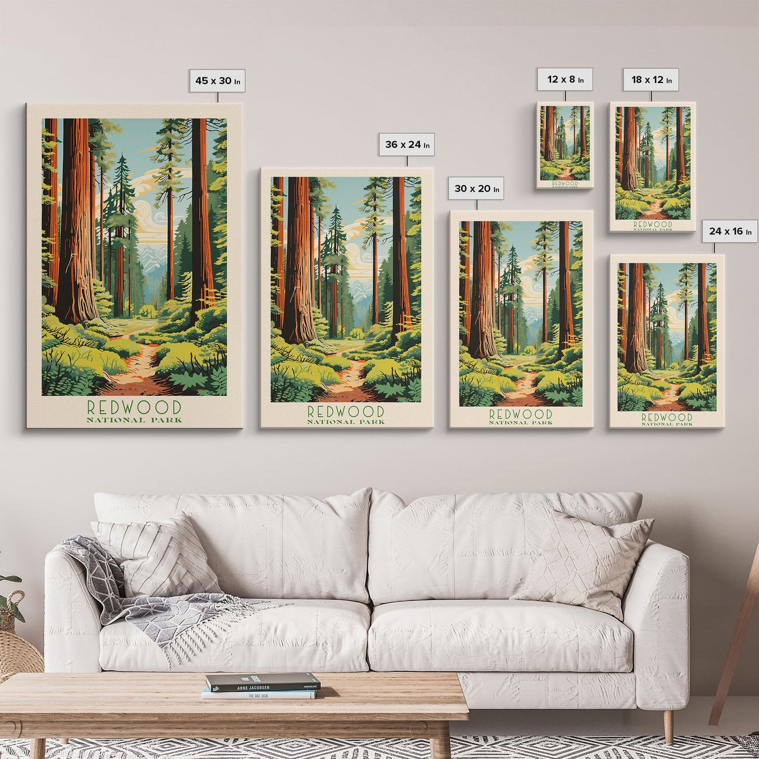 Redwood National Park, California Travel Art, National Park Print, Minimalist Travel Art, Midcentury Modern Retro Style Landscape - 8x12 Inches / No Frame - Stretched Canvas Only is backordered and will ship as soon as it is back in stock.