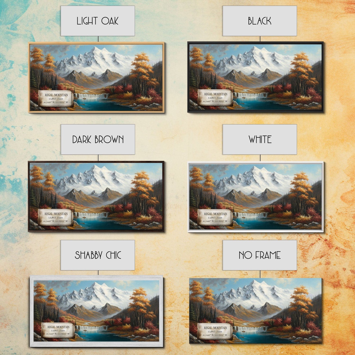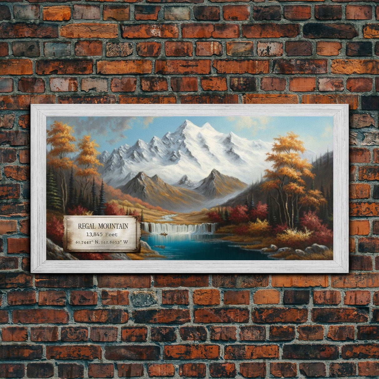 Regal Mountain, Travel Poster Wall Art, Framed Canvas Print, American Mountains, Mountain Landscape Painting, Wrangell Mountains Alaska