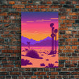 Retro Outrun Style Desert Landscape Print, Framed Canvas Art, Synthwave Style, Southwestern Decor, Western Art, Guest Room Decor