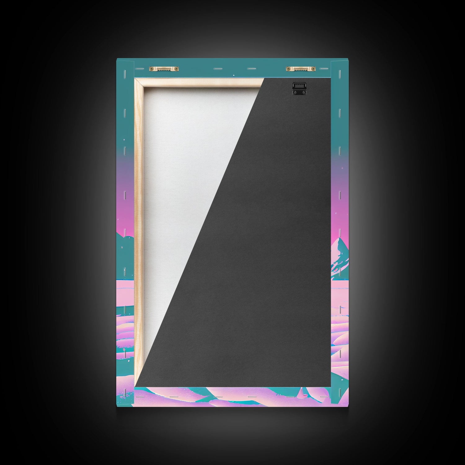 Retrowave Penguins in the Arctic, synthwave style wall art, Antarctica art, framed canvas print, cute animal prints - 8x12 Inches / No Frame - Stretched Canvas Only is backordered and will ship as soon as it is back in stock.