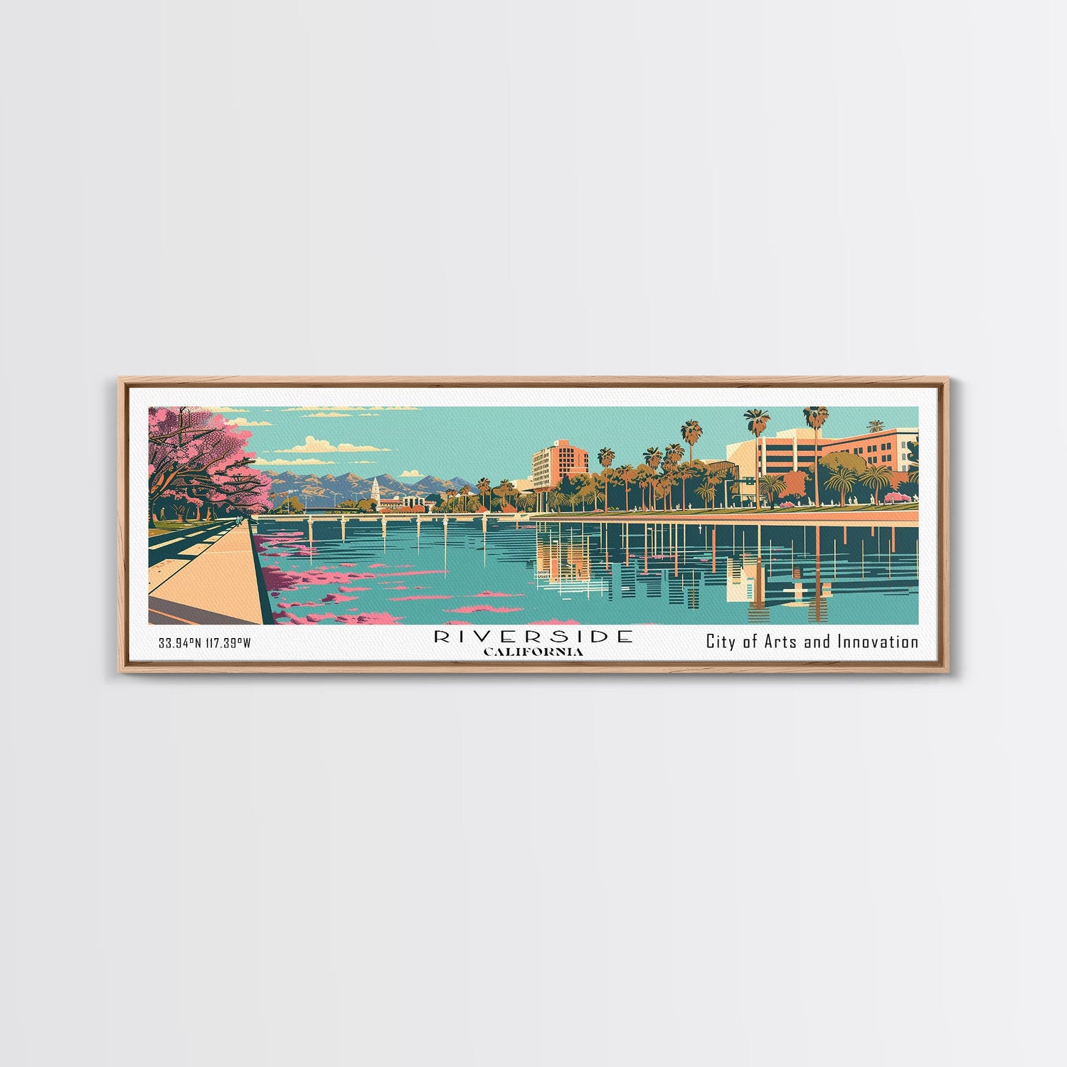 Riverside California Panoramic Wall Art, Mid Century Modern Framed Canvas Print, Retro Pop Art Cityscape, Travel Poster, Living Room Decor
