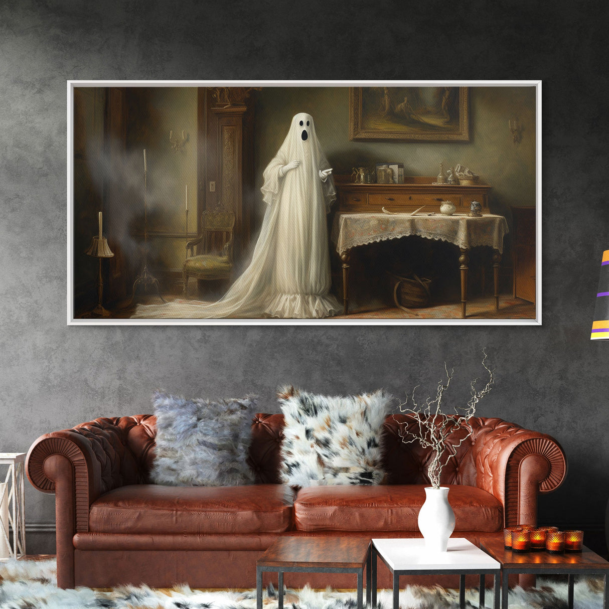 Sheet Ghost Wall Art, Framed Canvas Print, halloween decor, Halloween wall art, ghost print, dark academia, victorian oil painting