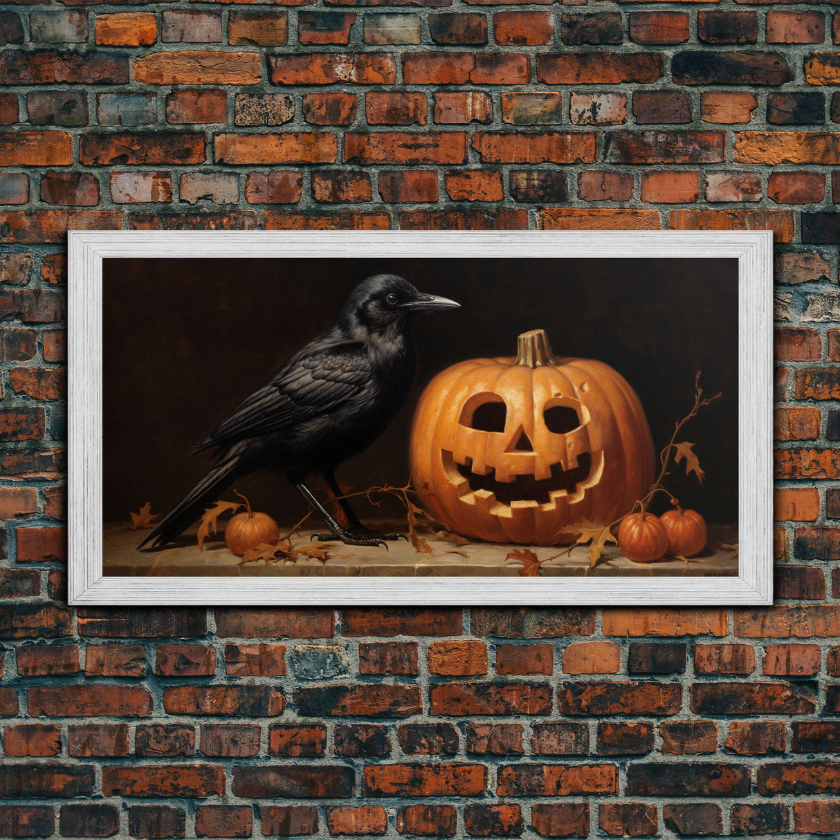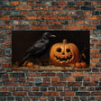 Spooky Crow Print, The Raven and The Jack O Lantern, Halloween Wall Art, Victorian Oil Painting - 10x20 Inches / No Frame - Stretched Canvas Only is backordered and will ship as soon as it is back in stock.
