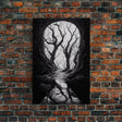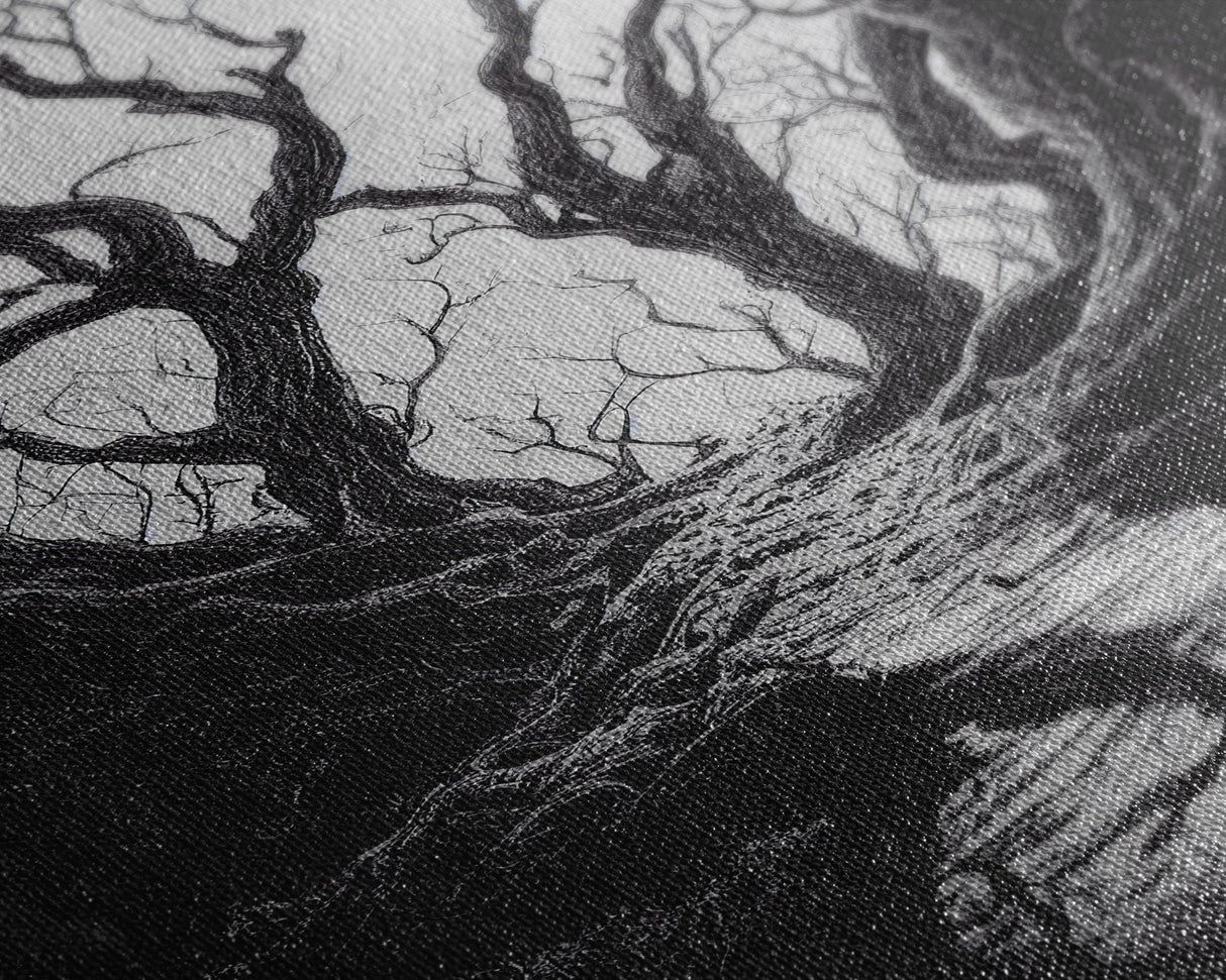 Spooky Haunted Halloween Forest, Black and White Art, Framed Canvas Print, Ready To Hang Framed Wall Art, Living Room Wall Hanging