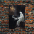 Spooky White Ghost Playing A Piano, Gothic Victorian Halloween Art, Halloween Decoration / Wall Art, Skeleton Art, Gothic Oil Painting