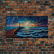 Starry Night Style Light House - Framed Canvas Print - Lighthouse and Beach Art - Lakehouse Art - Beach House - Living Room Decor