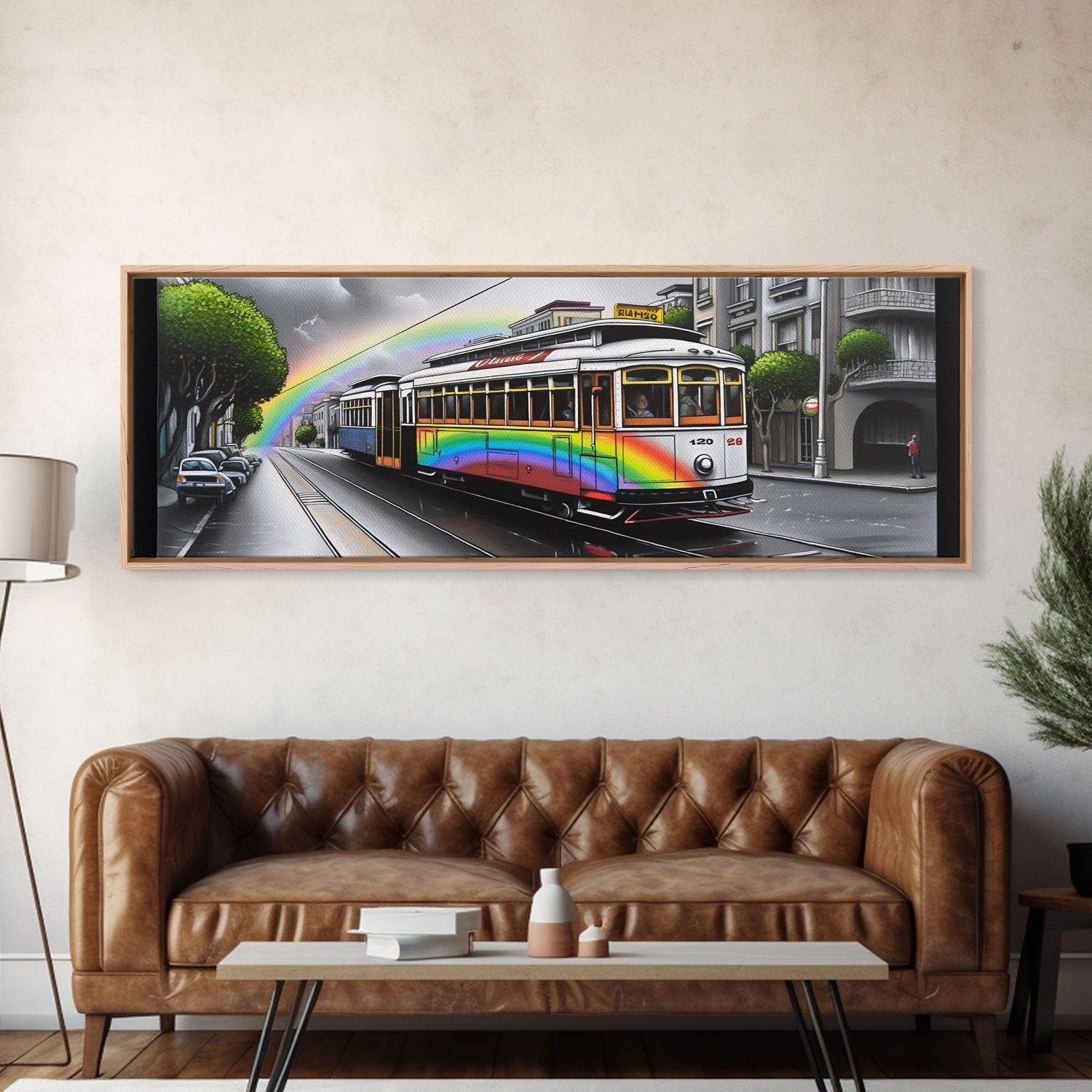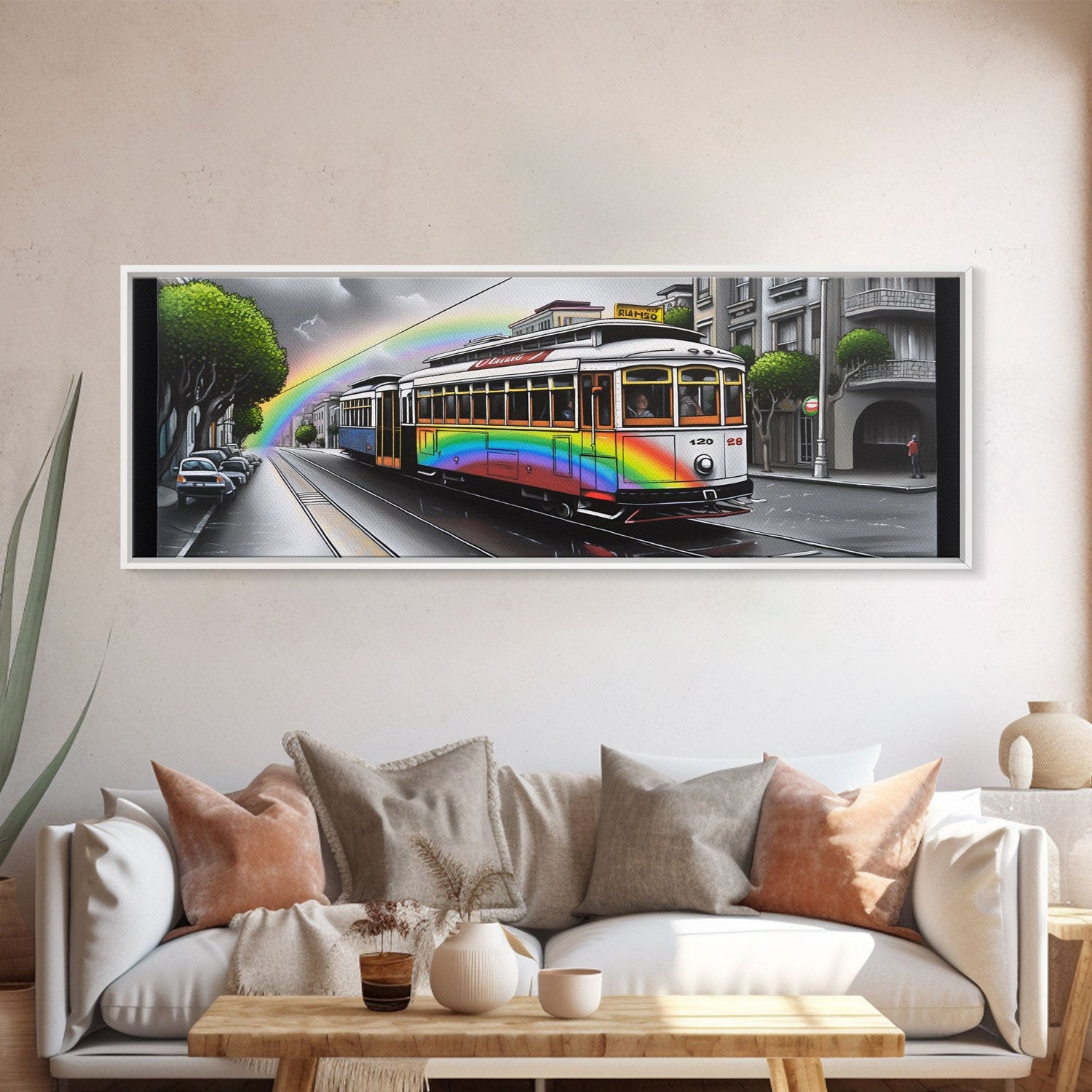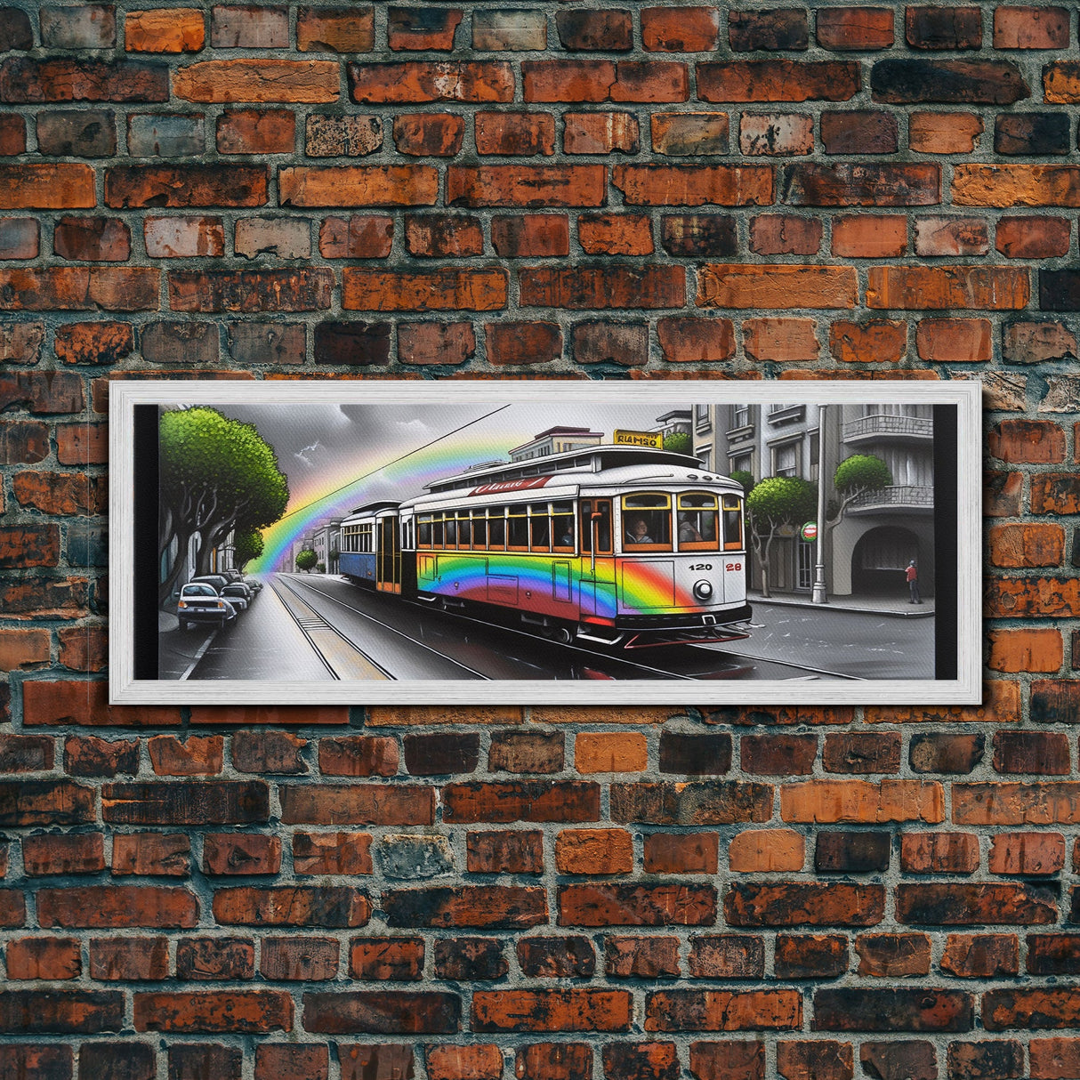 Streetcar Canvas Print, Urban Wall Art, Rainbow Canvas Art, Large Print, Framed Canvas, Wall Decor, Panoramic, Wall Art, Canvas Print