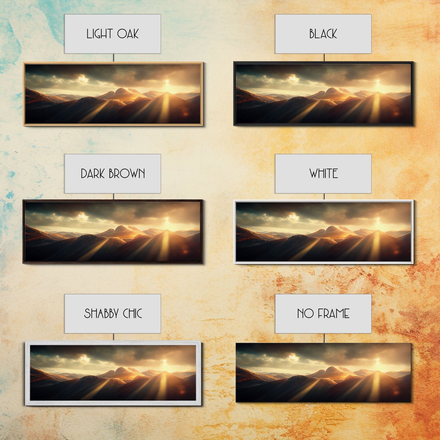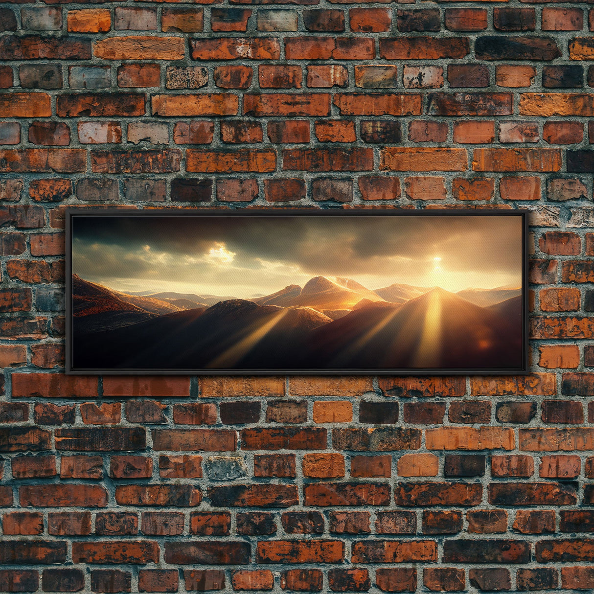 Sunrise Over The Mountains, Ready To Hang Canvas Print, Panoramic Art, Above Bed Art, Above Couch Art, Above Sofa Landscape Decor