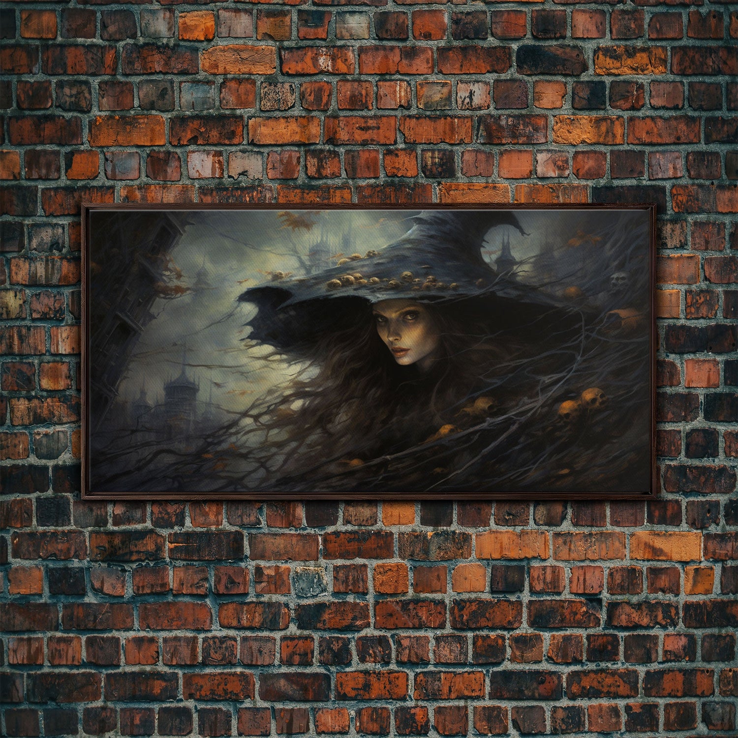 The Green Witch, Framed Canvas Print, Halloween Wall Art, Horror Prints, Halloween Decoration - 10x20 Inches / No Frame - Stretched Canvas Only is backordered and will ship as soon as it is back in stock.