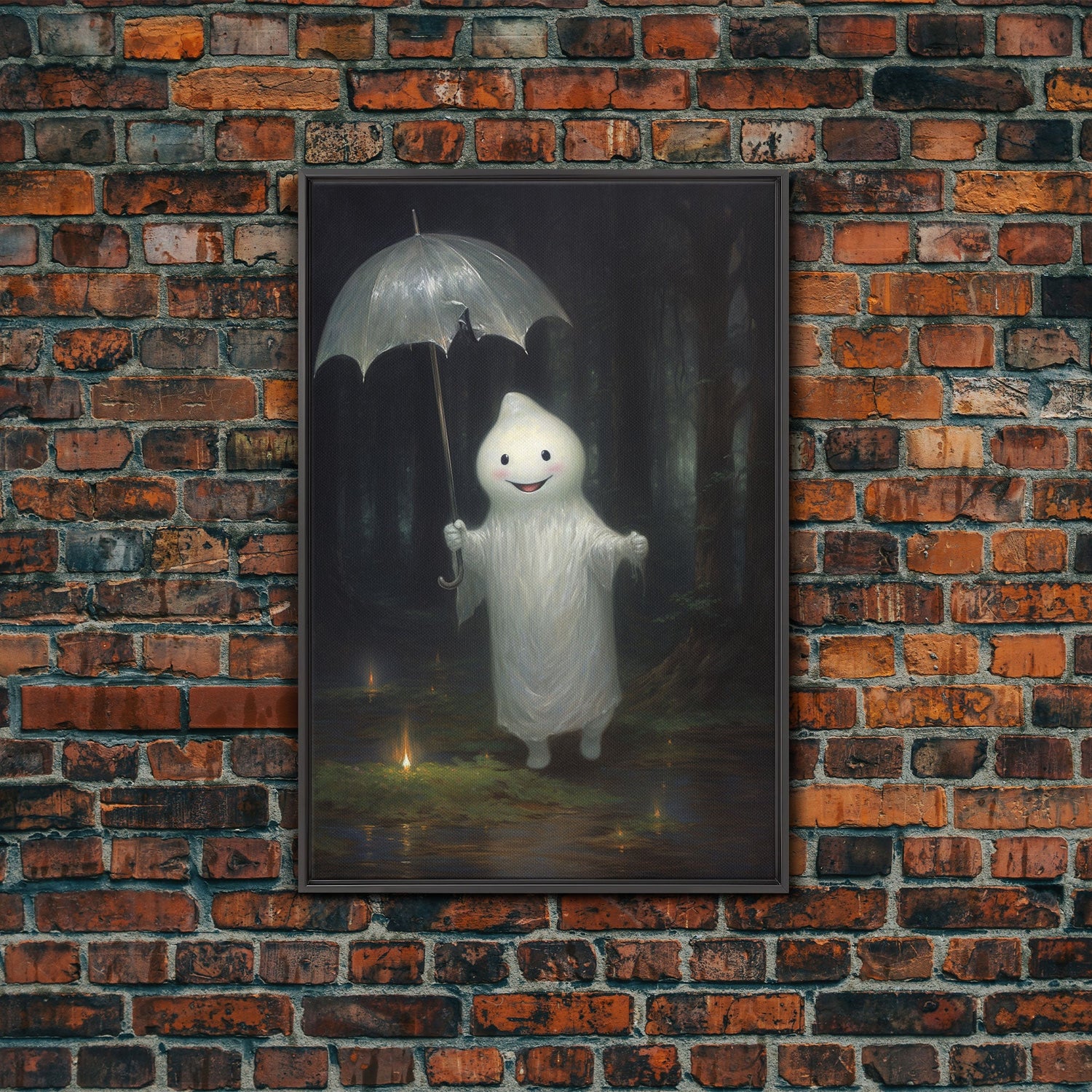 The Playground Ghost, Funny Halloween, Vintage Halloween Canvas, Framed Canvas Print, Cute Wall Art, Ghost On A Swing, Macabre Goth Art