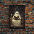 The Reading Ghost, Victorian Halloween Art, Funny Halloween, Framed Canvas, Halloween Canvas Art, Macabre Goth Art