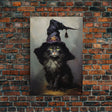 The Wizard Cat, Framed Canvas Print, Dark Academia Halloween Art, Victorian Cat Oil Painting, Goth Halloween Decor