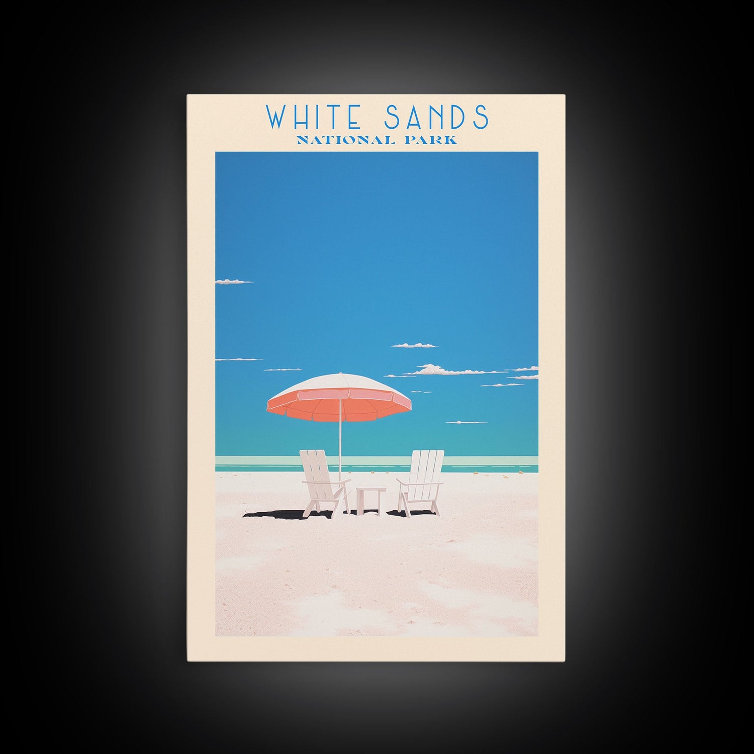 White Sands National Park, New Mexico Travel Art, National Park Print, Minimalist Travel Art, Midcentury Modern Retro Style Landscape - 8x12 Inches / No Frame - Stretched Canvas Only is backordered and will ship as soon as it is back in stock.
