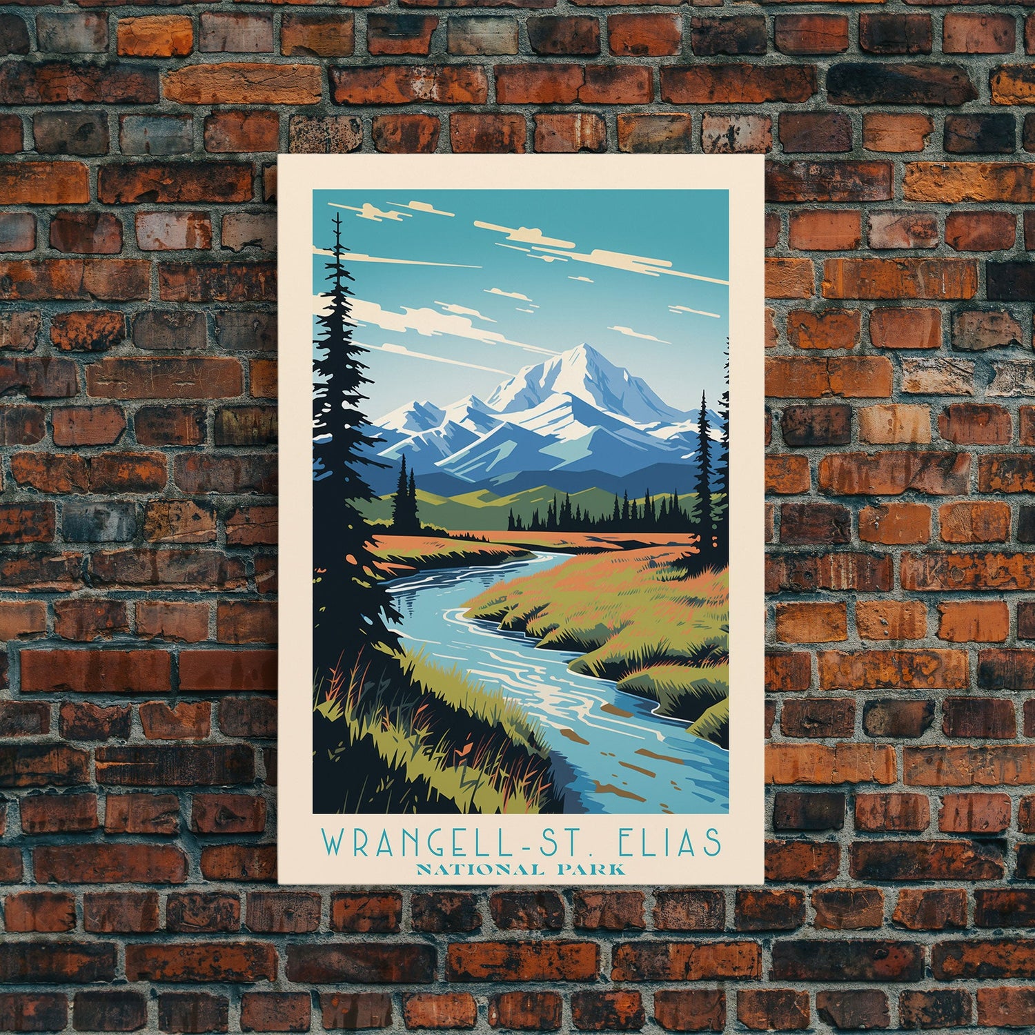 Wrangell St. Elias National Park, Alaska Travel Art, National Park Print, Minimalist Travel Art, Midcentury Modern Retro Style Landscape