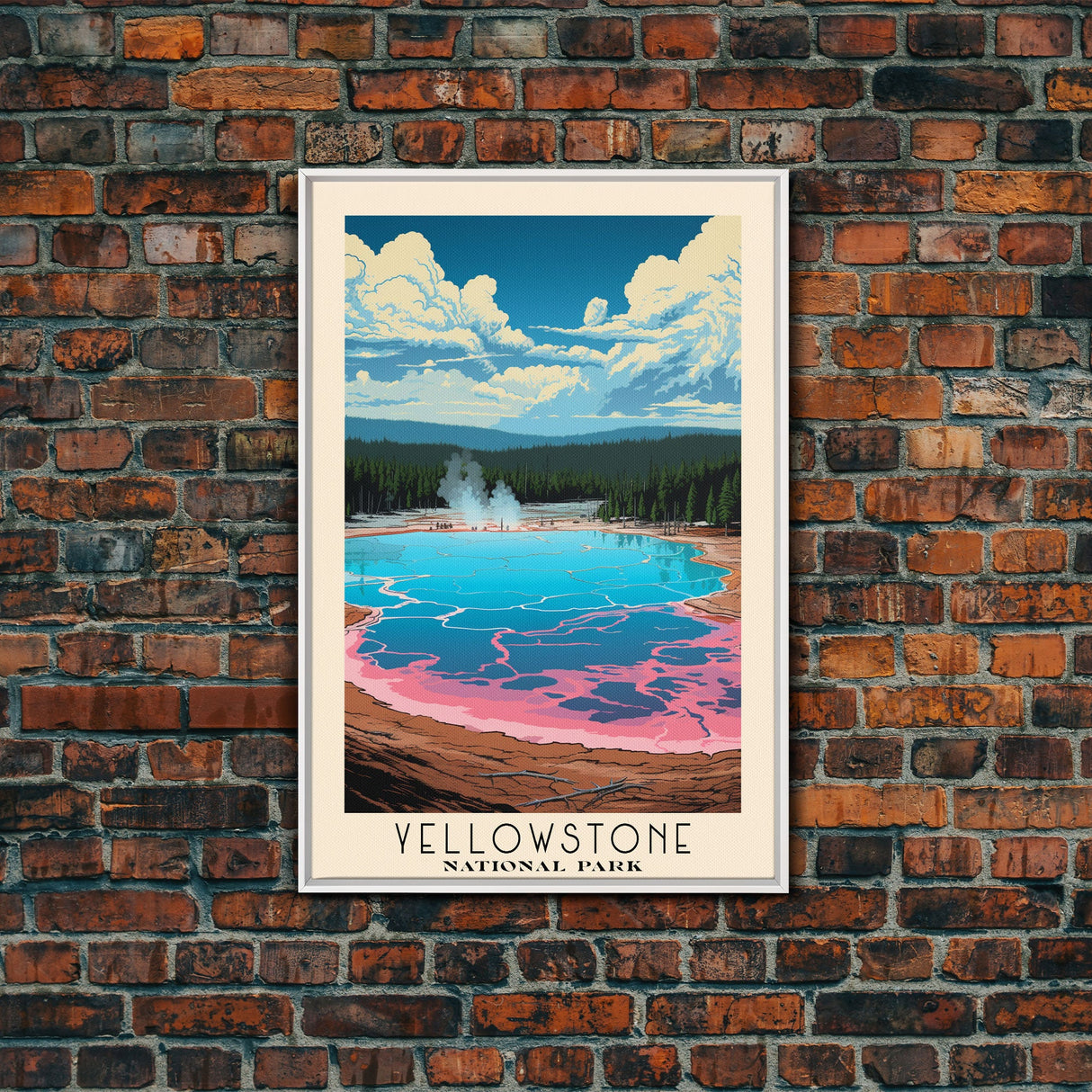 Yellowstone National Park, Wyoming Travel Art, National Park Print, Minimalist Travel Art, Midcentury Modern Retro Style Landscape