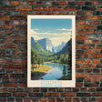 Yosemite National Park, California Travel Art, National Park Print, Minimalist Travel Art, Midcentury Modern Retro Style Landscape