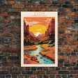 Zion National Park, Utah Travel Art, National Park Print, Minimalist Travel Art, Midcentury Modern Retro Style Landscape