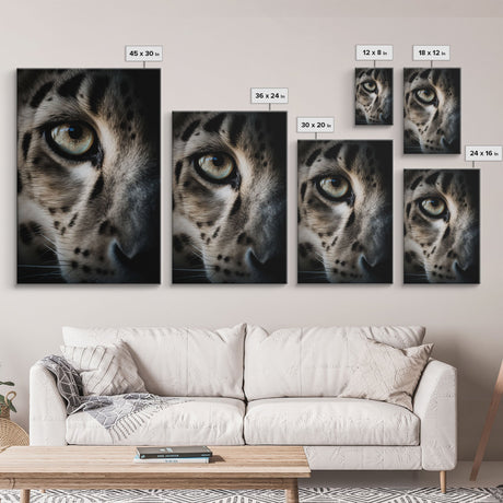 Snow Leopard Photography Art, Framed Canvas Print, Predator Art, Big Cat Art