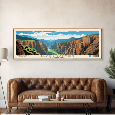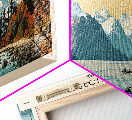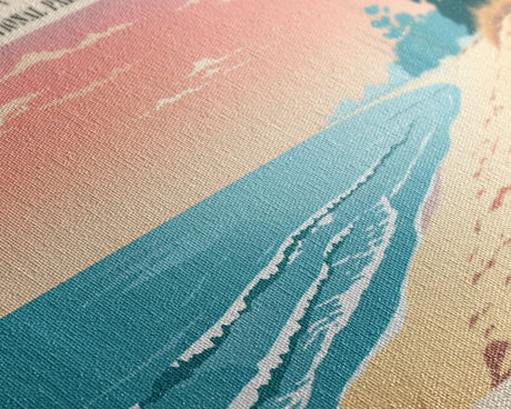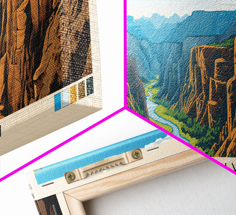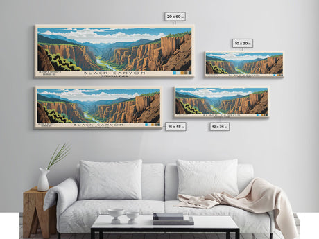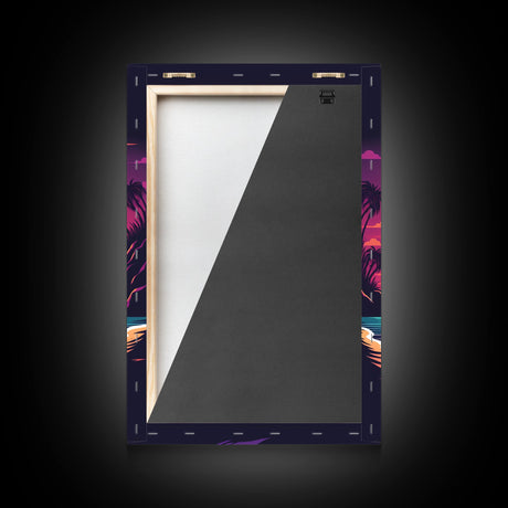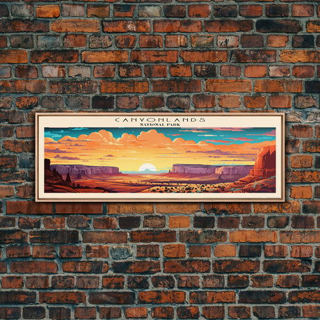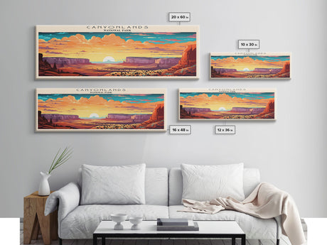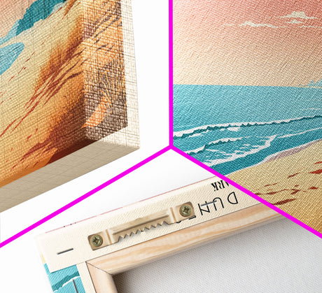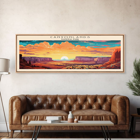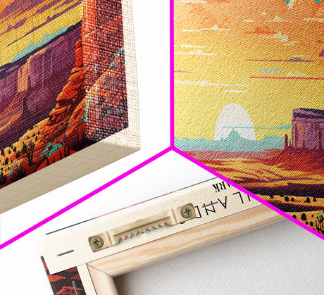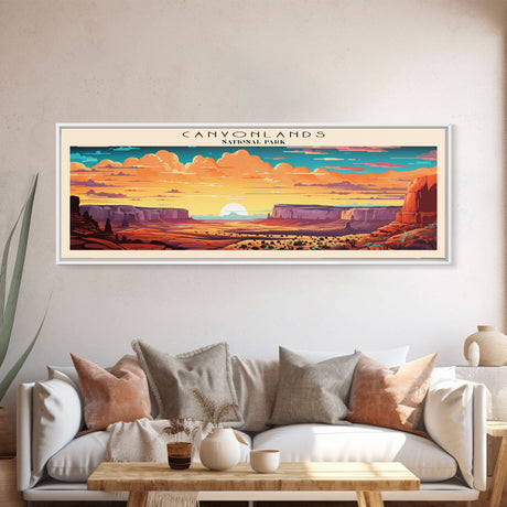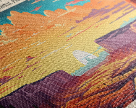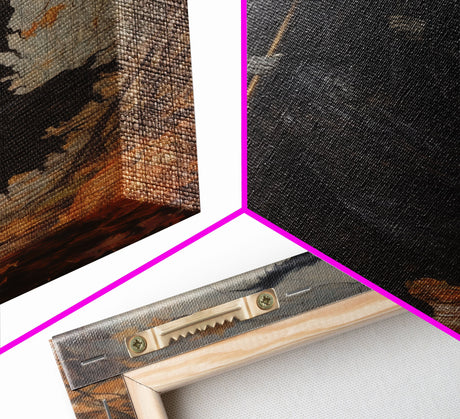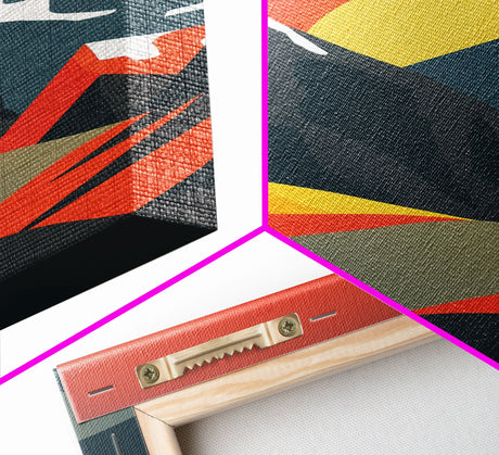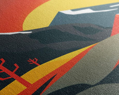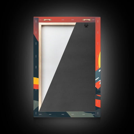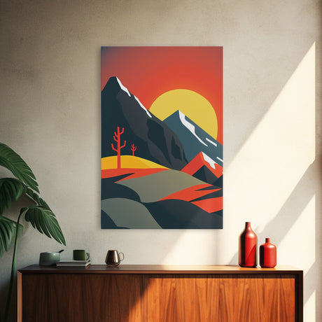 Orange Sky and Sunset over A Mountain Landscape, Framed Canvas Print, Minimalist Abstract Art