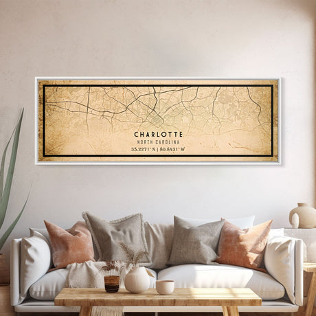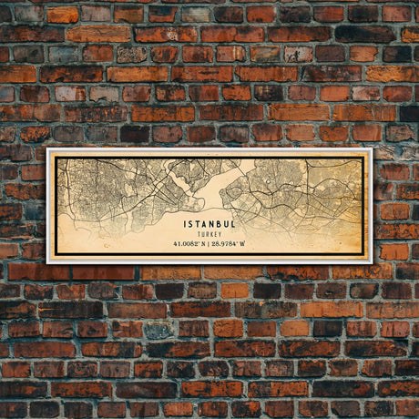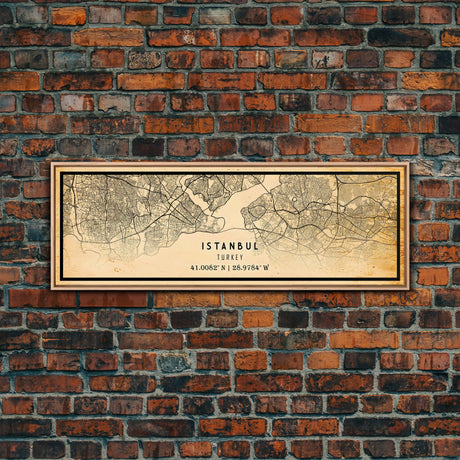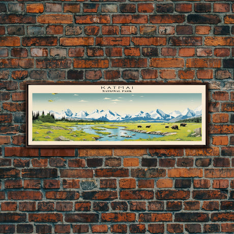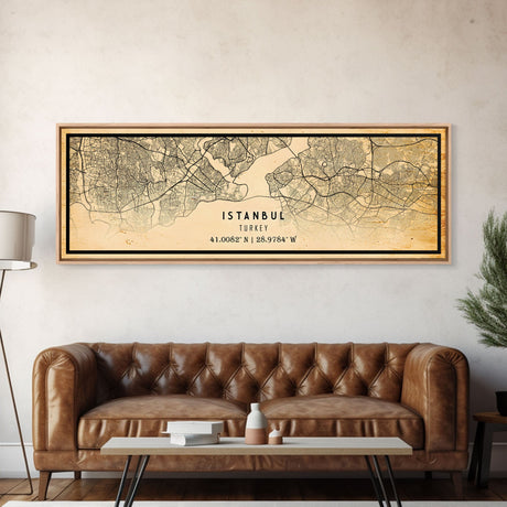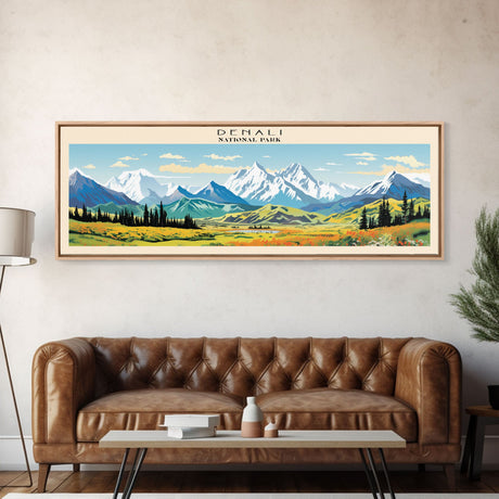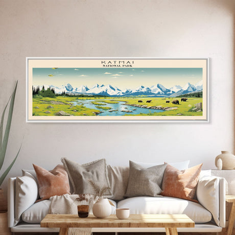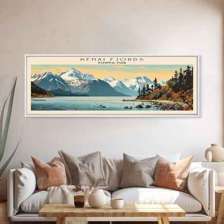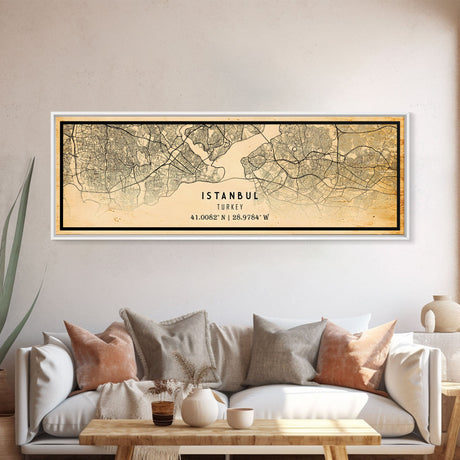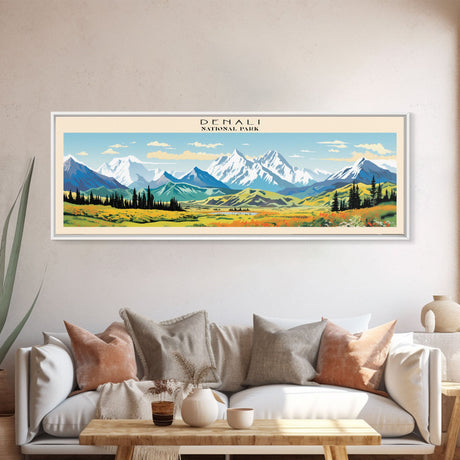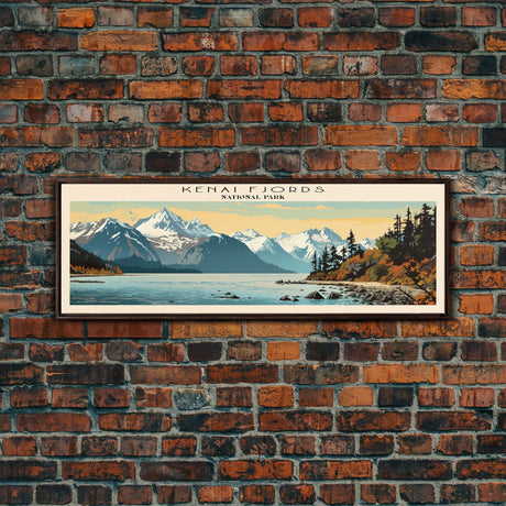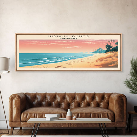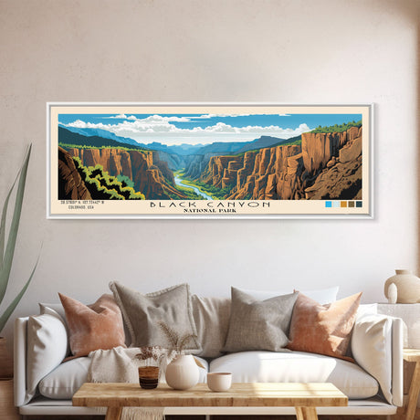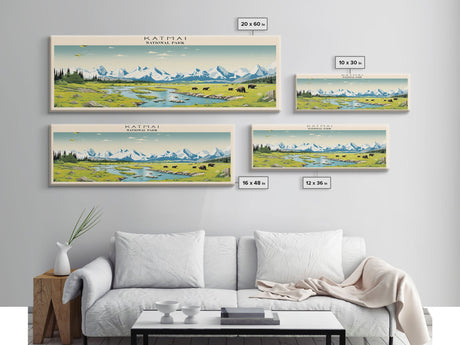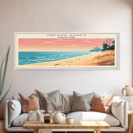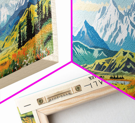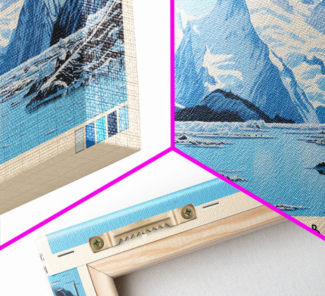 Orange Sky and Sunset over A Mountain Landscape, Framed Canvas Print, Minimalist Abstract Art