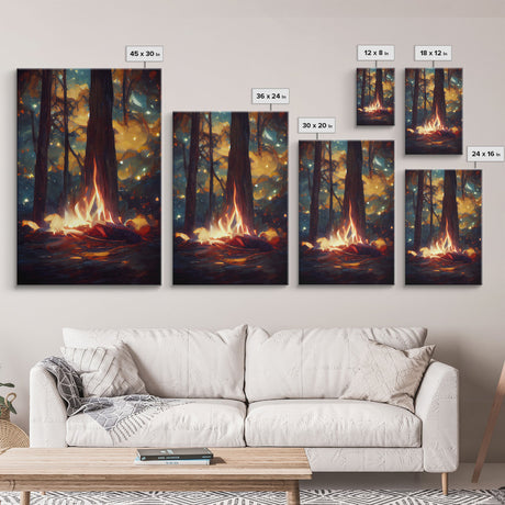 Abstract Campfire Art, Framed Canvas Print, Ready To Hang Framed Wall Art, Living Room Wall Hanging