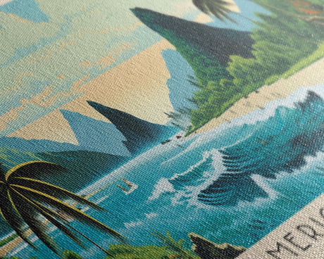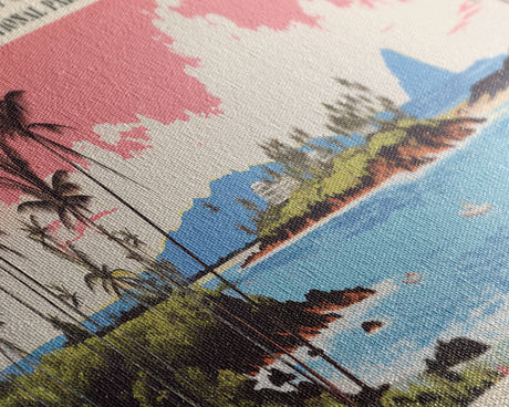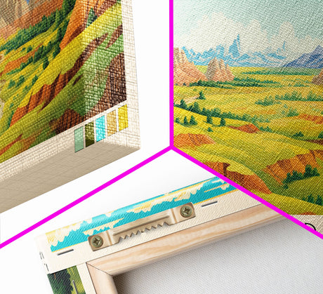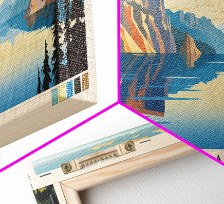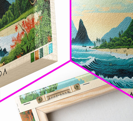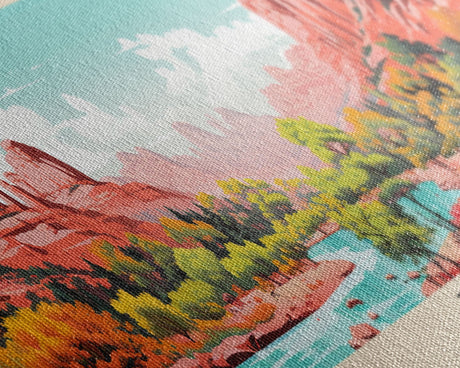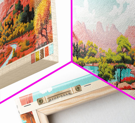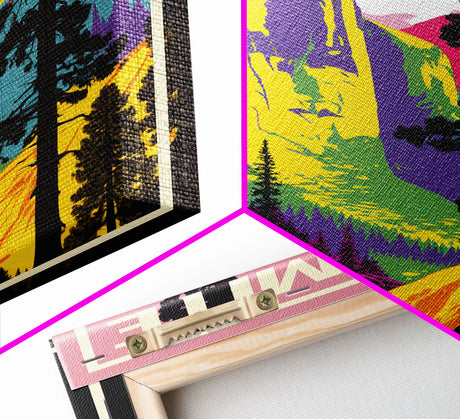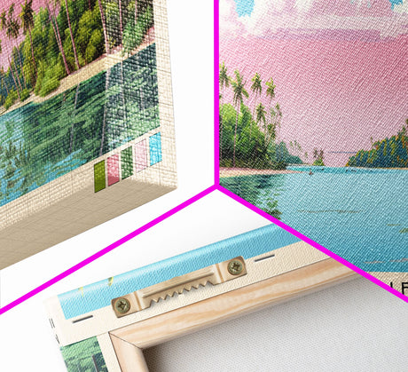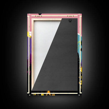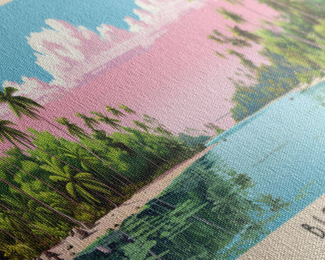 Synthwave Art, Neon / Pastel Beach Boardwalk, framed canvas print, vintage 80s style art