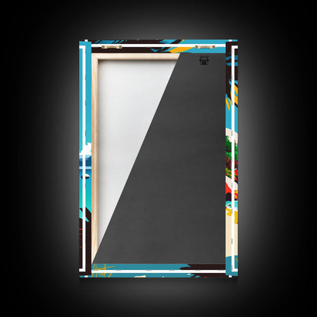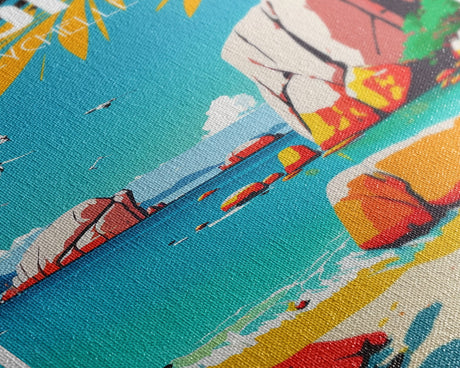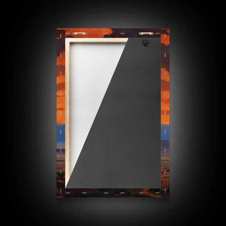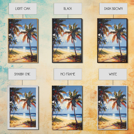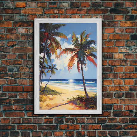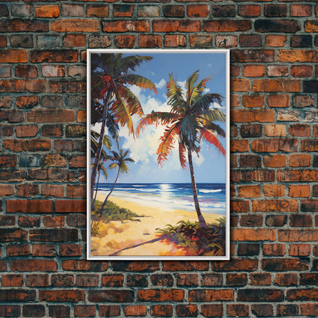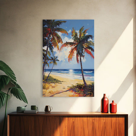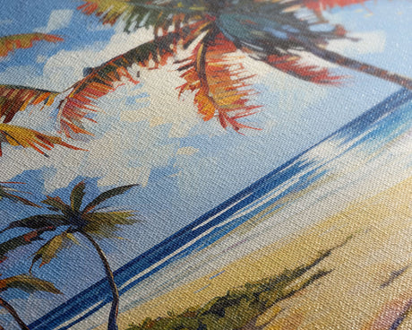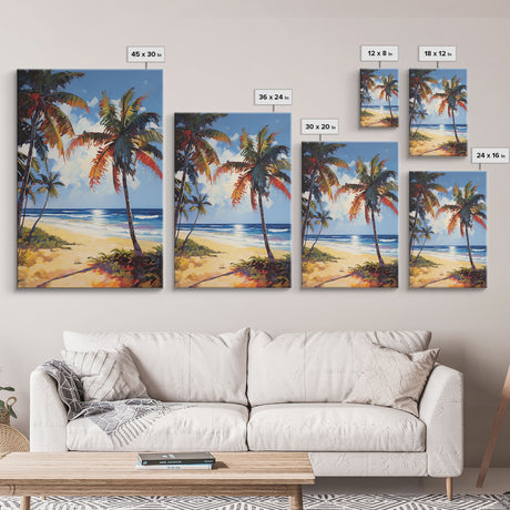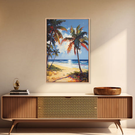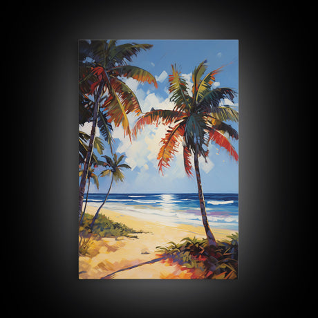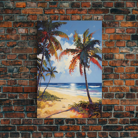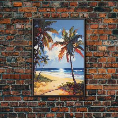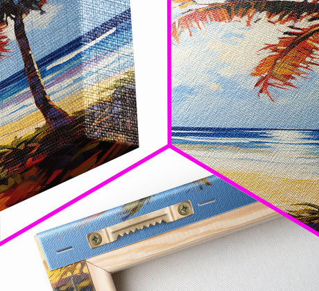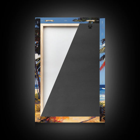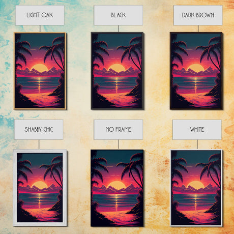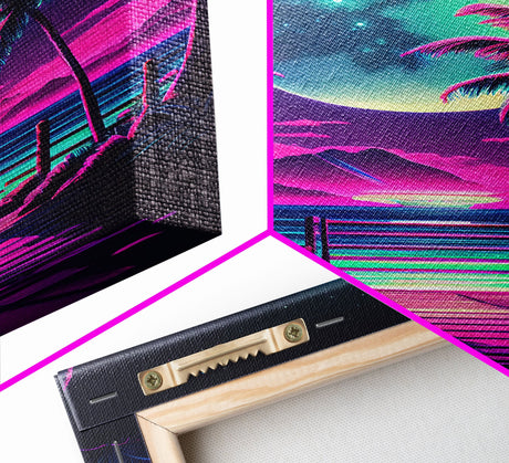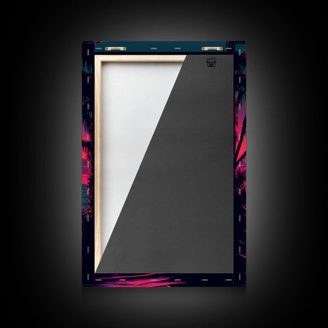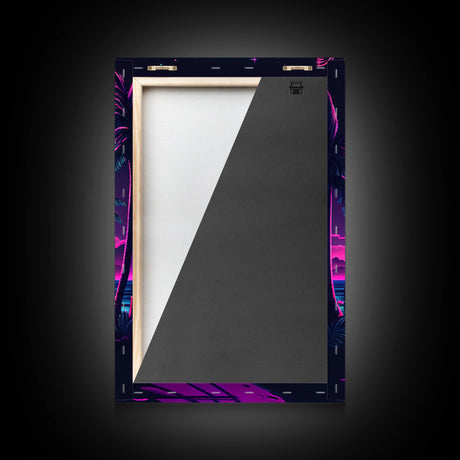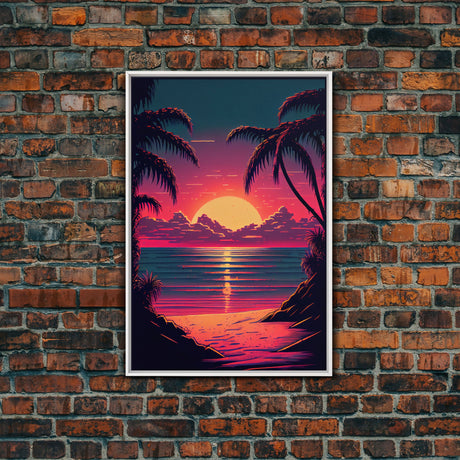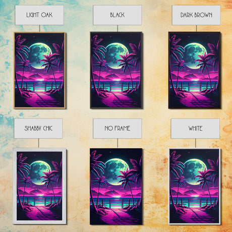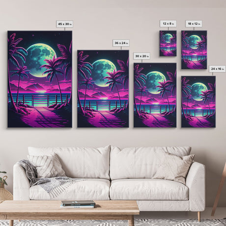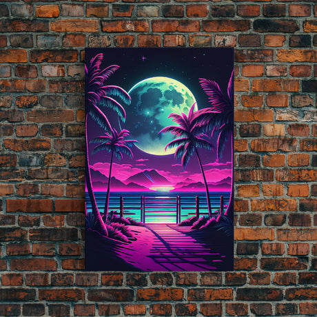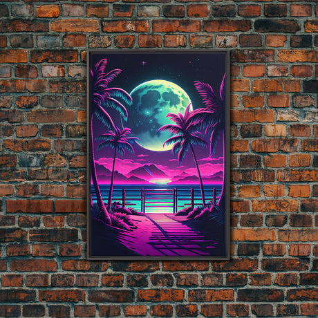 Full Moon over a Florida Beach, Palm Trees, Outrun Style Beach Landscape art, framed canvas Print