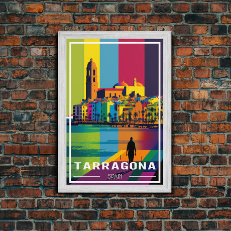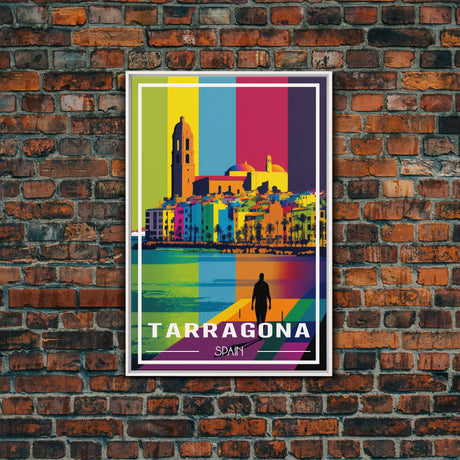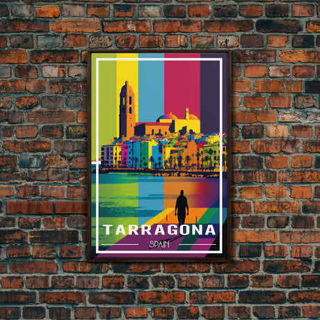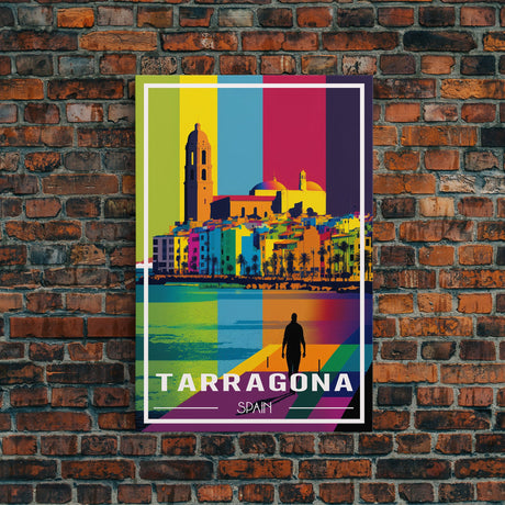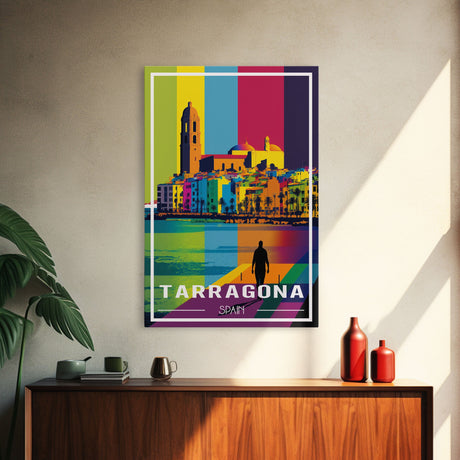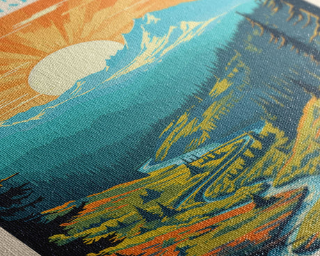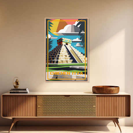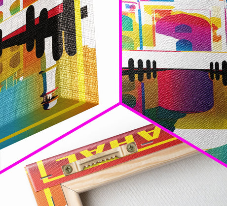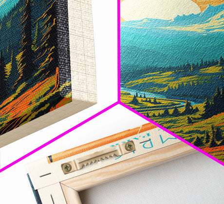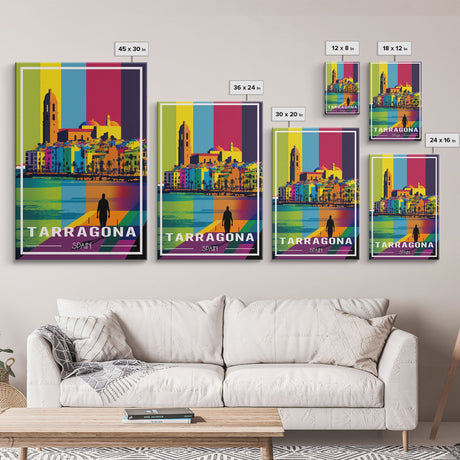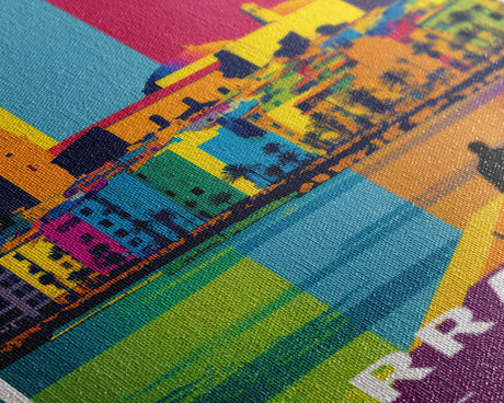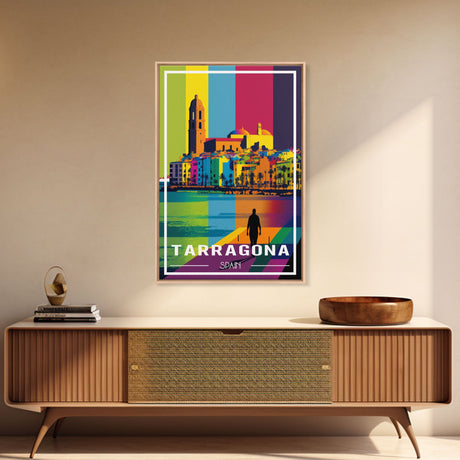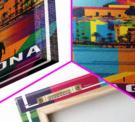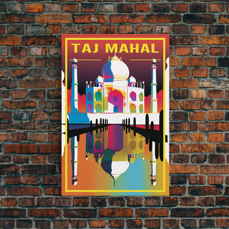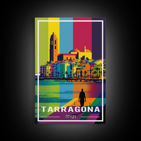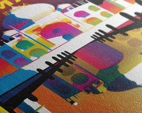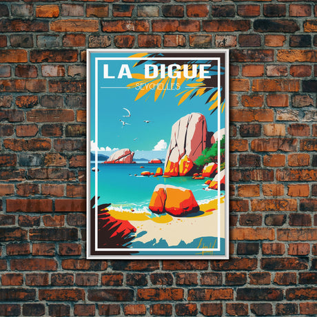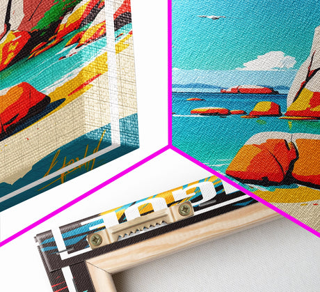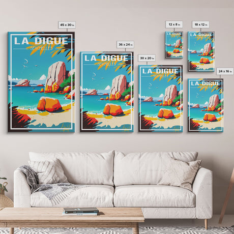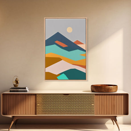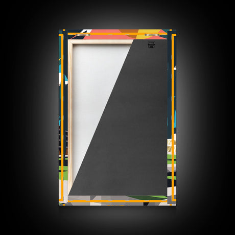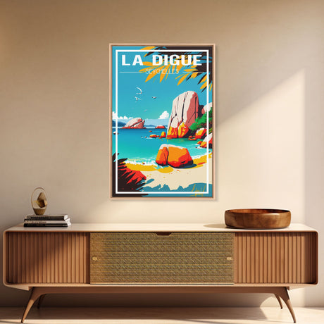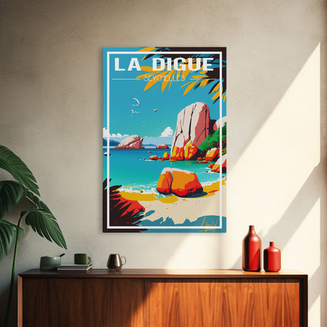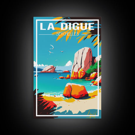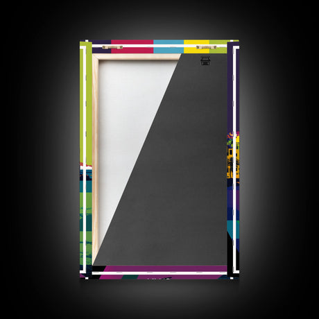 Full Moon over a Florida Beach, Palm Trees, Outrun Style Beach Landscape art, framed canvas Print