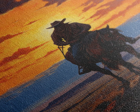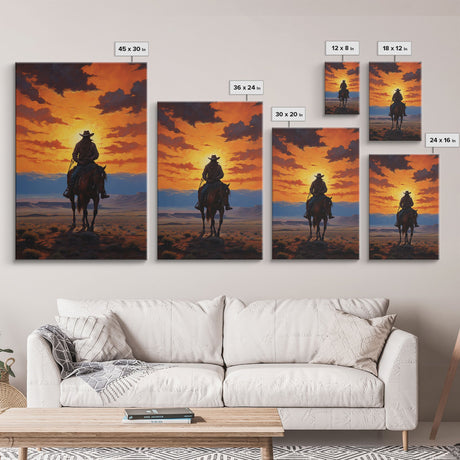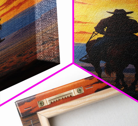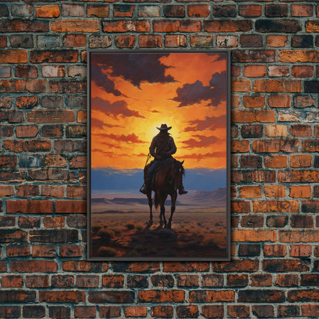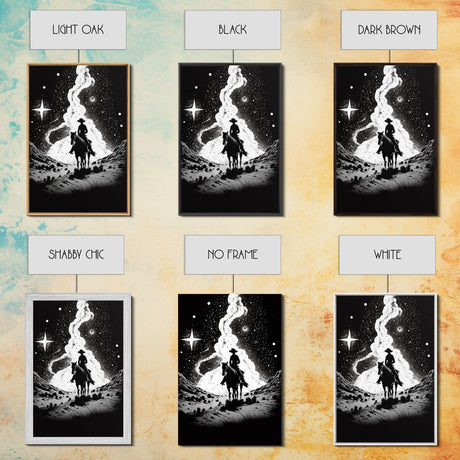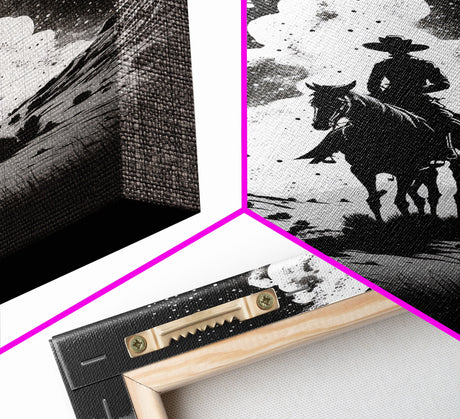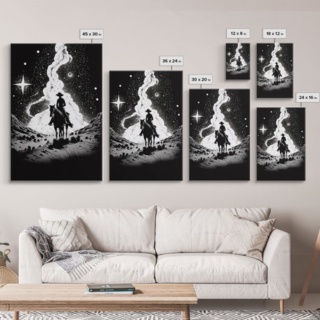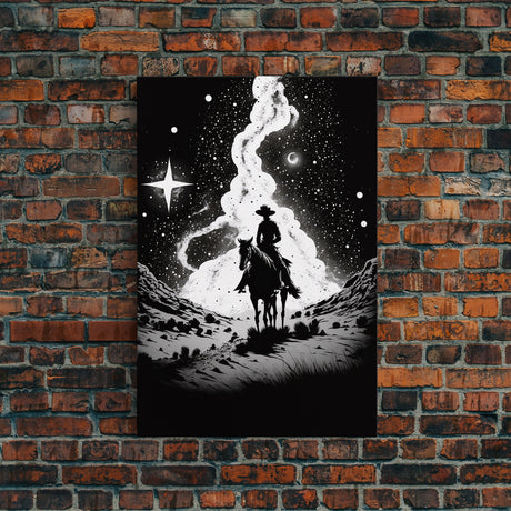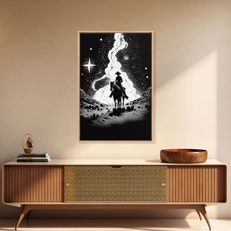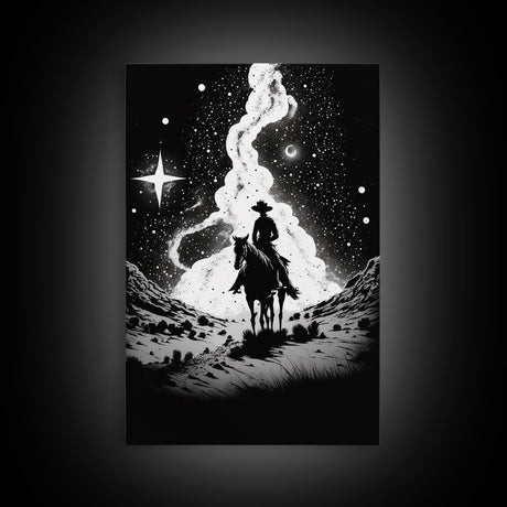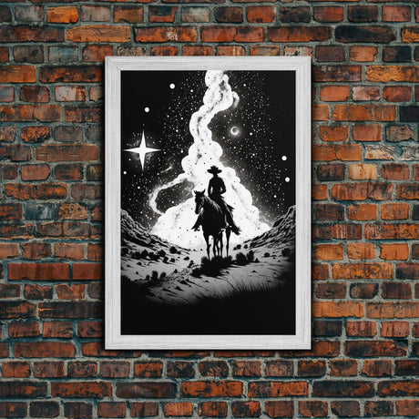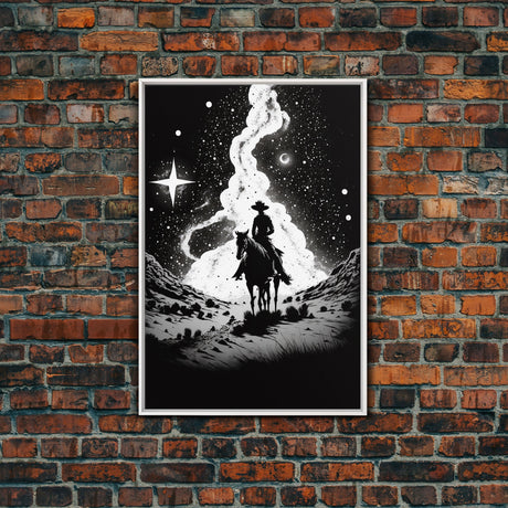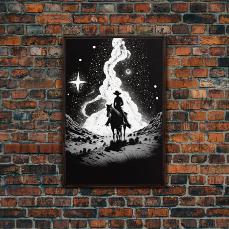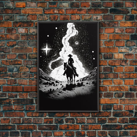 Western Decor, Black and White Cowboy Art, Framed Canvas Print